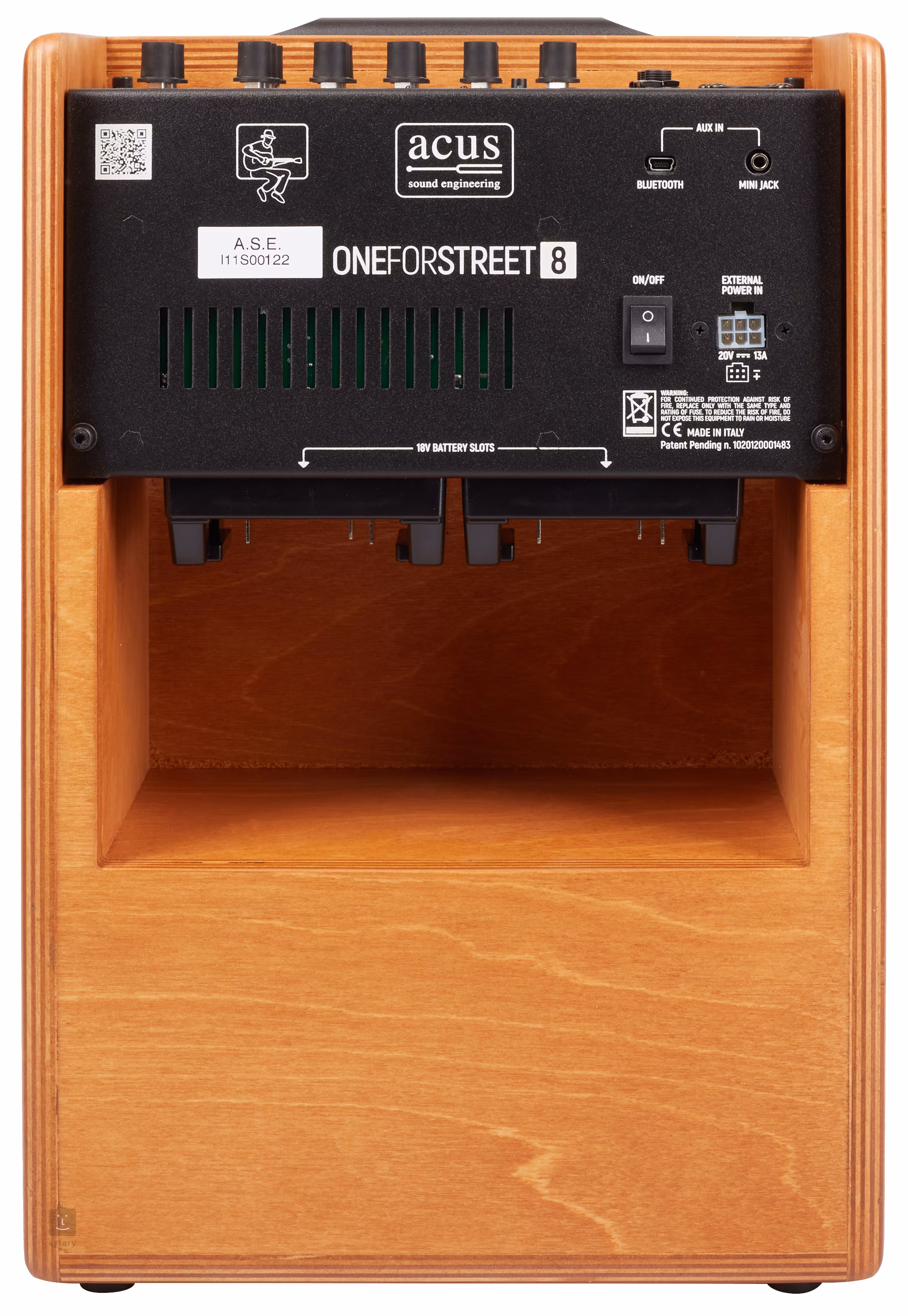 ONEFORSTREET 8 WOOD je kombo pro akustické nástroje vhodné pro pouliční muzikanty/buskery a menší hudební uskupení. Nabízí dotažený design aparátů Acus, kdy kabinet z březové překližky doplňuje čelní kovová mřížka, tři kanály se třemi nástrojovými a dvěma mikrofonními vstupy, moderní funkce (kompatibilita s Bluetooth přes přibalený přijímač Artesia BT-1, streamování propojením XLR Direct Out výstupu a Aux In konektoru) a možnost napájení bateriemi s výkonem až sedm hodin na jedno dobití.