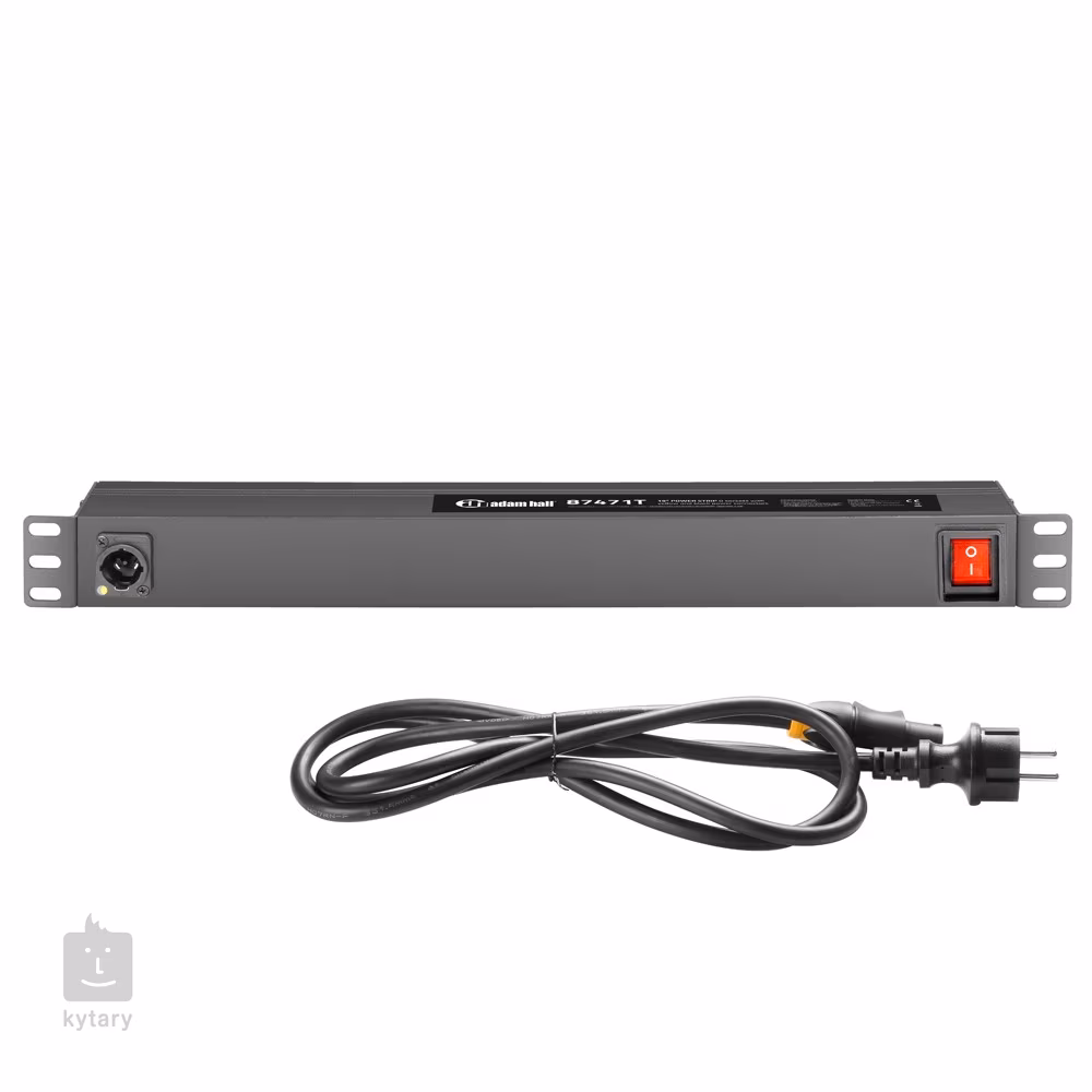 Adam Hall 87471 T je napájecí zásuvková lišta v provedení 19" 1U rack jednotky, která obsahuje 8 CEE 7/7 zásuvek s provozním napětím 250 V a maximálním proudem 16 A. Zásuvky lze otočil o 45°, lišta má odnímatelný napájecí kabel o délce 1,4 m.