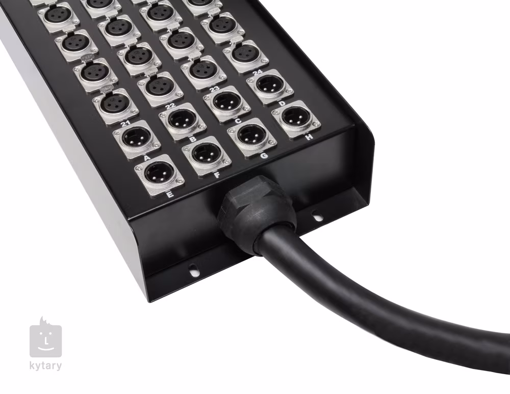 Stagebox je nepostradatelným vybavením pro ozvučení jakékoli akce. Horní panel disponuje zásuvkovým terminálem se 24 vstupními kanály (XLR F) a 8 výstupními kanály (XLR M). Masivní ocelové šasi je vybaveno praktickým držadlem pro přenášení.