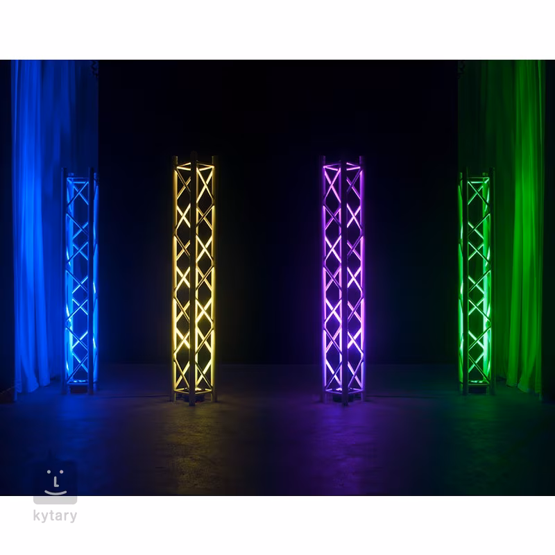 K ovládání využijete buďto standardní protokol DMX512, sedm automatických programů nebo zvukem ovládané programy. Zařízení je kompatibilní také s bezdrátovým ovladačem Dotz PAR RF Remote, který není součástí balení. K manuálnímu nastavení poslouží přehledný ovládací panel s displejem a tlačítky. Reflektor má bytelnou kovovou konstrukci a je osazen 3pinovými a 5pinovými DMX konektory a napájecími konektory PowerCon. Součástí balení je rám pro gelové filtry. Bezdrátový ovladač Dotz PAR RF Remote můžete zakoupit zde.