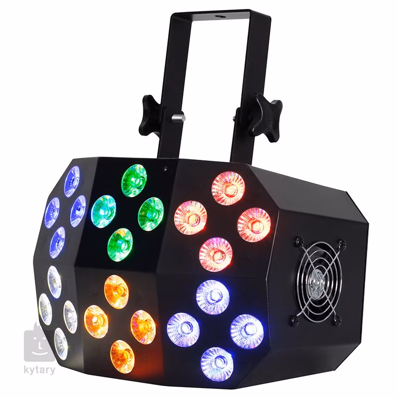 LED reflektor Mega Wash 24 od společnosti ADJ je dynamický světelný přístroj, který přináší impozantní efekty pro různé aplikace – od elektrizujících atmosfér v klubech, přes setupy mobilních DJů, až po tvorbu poutavých prostředí v barech a zábavních centrech. Tento všestranný reflektor je vybaven dvaceti čtyřmi 10W 6v1 LED diodami, které poskytují barevné efekty s vyzařovacím úhel 25°. Každá LED dioda nabízí barevnou paletu RGBWA + UV, což umožňuje vytvářet široké spektrum barevných odstínů, včetně ultrafialového světla pro fosforeskující světelné show. Reflektor můžete ovládat v šesti zónách po čtyřech diodách, které lze nastavovat nezávisle na sobě.