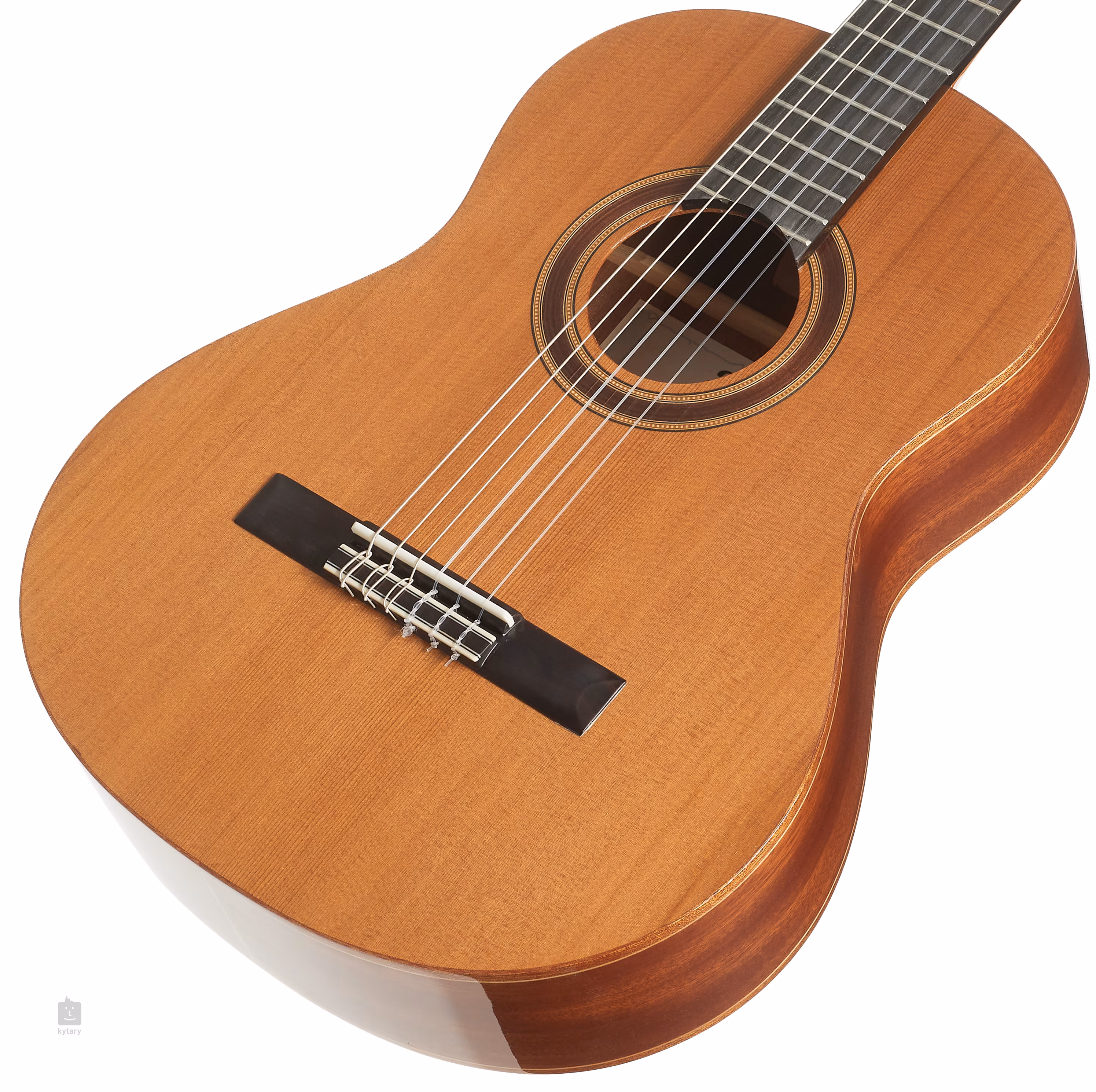 Dětská klasická kytara ve 3/4 velikosti Admira Granada (ADM065034) je kvalitně zpracovaný nástroj s polomasivní konstrukcí. Přední deska kytary je zhotovena z masivu cedru, zadní deska luby jsou vyrobeny z vrstveného sapele. Tělo kryje lesklý lak. Ke krku z afrického mahagonu je přilepen hmatník ze dřeva kabukalli. Struny jsou uchyceny v klasických ladících mechanikách a kobylce z kabukalli. Stylové zpracování podtrhují tradiční prvky v podobě rozety, světlé lemovky a firemního loga na hlavici.