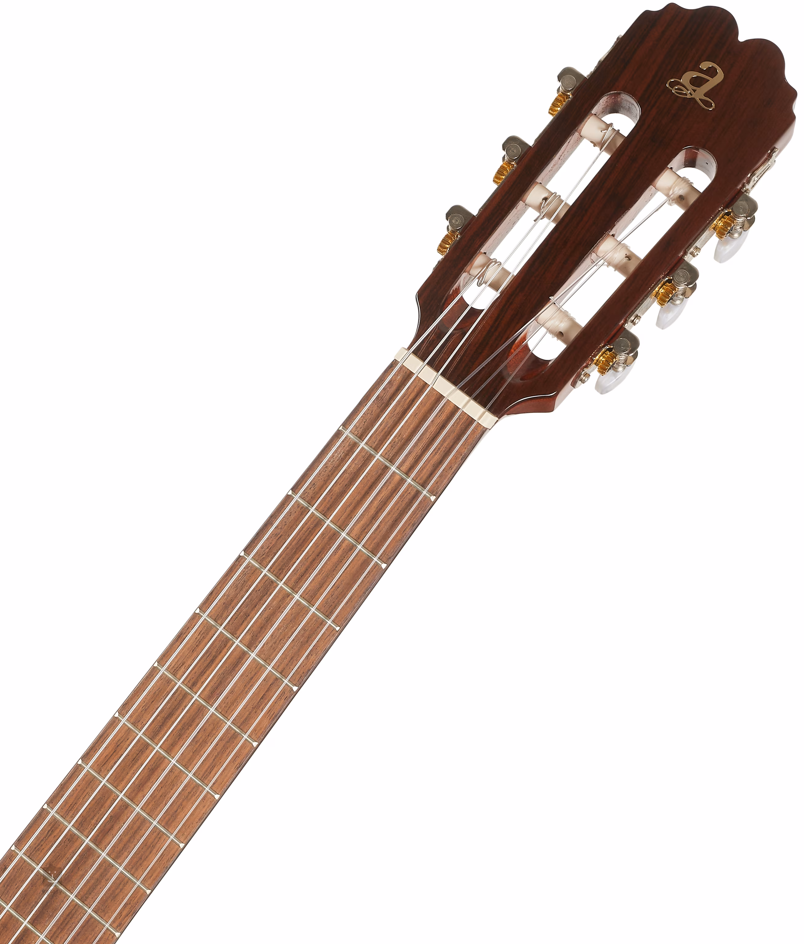 Admira Málaga (ADM054034) je cenově dostupná dětská klasická kytara v 3/4 velikosti vhodná pro mladé začínající kytaristy a studenty hudebních škol. Nabízí polomasivní konstrukci s přední deskou z masivu cedru a zadní deskou a luby z vrstveného sapele. Tělo kryje lesklý lak. Ke krku z afrického mahagonu je přilepen hmatník ze dřeva kabukalli. Struny jsou uchyceny v klasických niklových ladících mechanikách a kobylce z kabukalli. Stylové zpracování podtrhují tradiční prvky v podobě rozety, lemovky a firemního loga na hlavici.