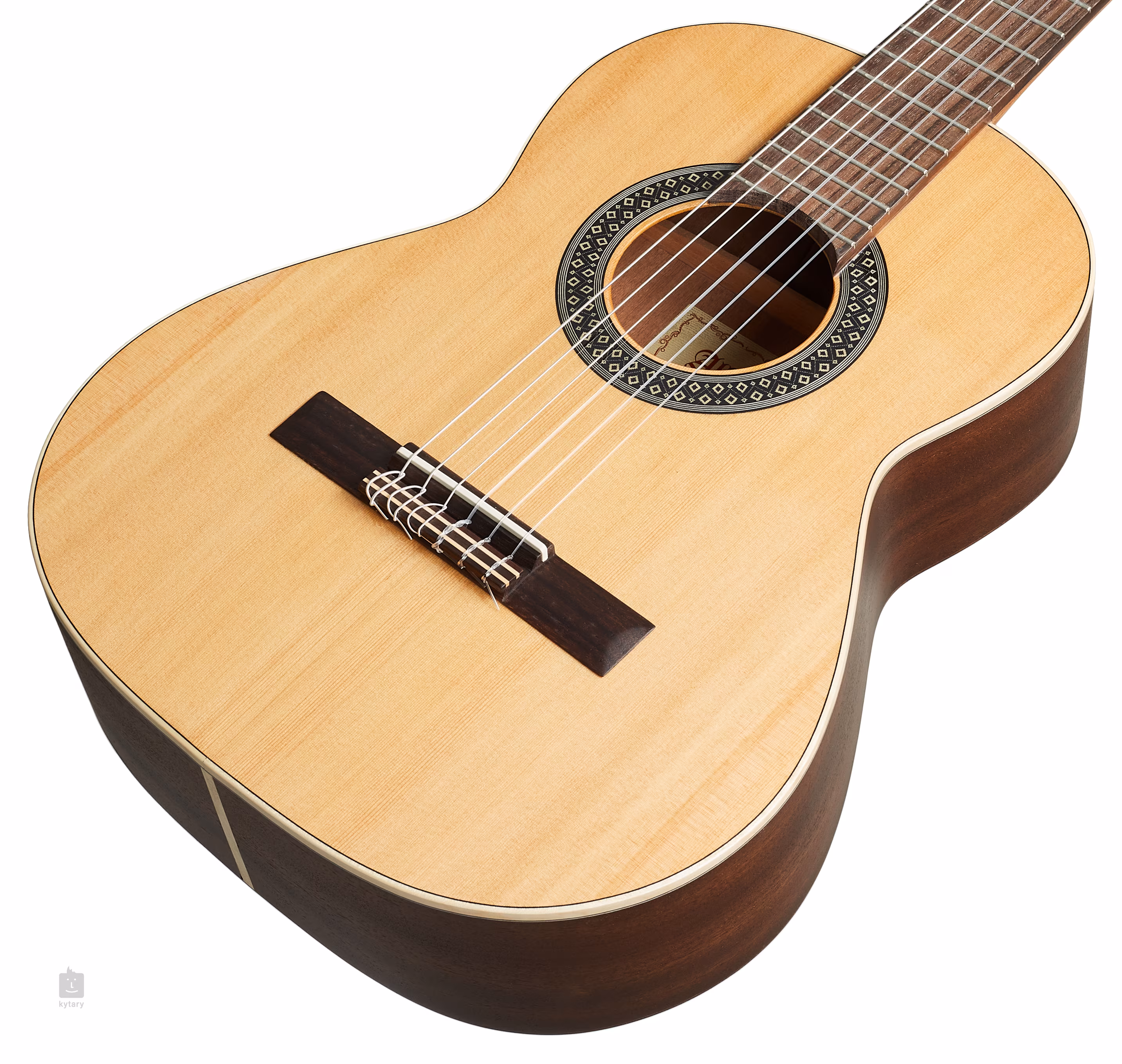 Přední deska modelu Alhambra 1 C HT v 1/2 velikosti je zhotovena z masivního červeného cedru, zadní deska a luby z překližovaného mahagonu. K mahagonovému ergonomicky tvarovanému krku je přilepen palisandrový hmatník osazený pražci z pakfongu/alpaky. Struny jsou přes nultý a sedlový pražec ze syntetického materiálu uchyceny v poniklovaných ladících mechanikách a palisandrové kobylce. Pěkné zpracování podtrhuje javorová obvodová lemovka těla a firemní logo na hlavici kytary.