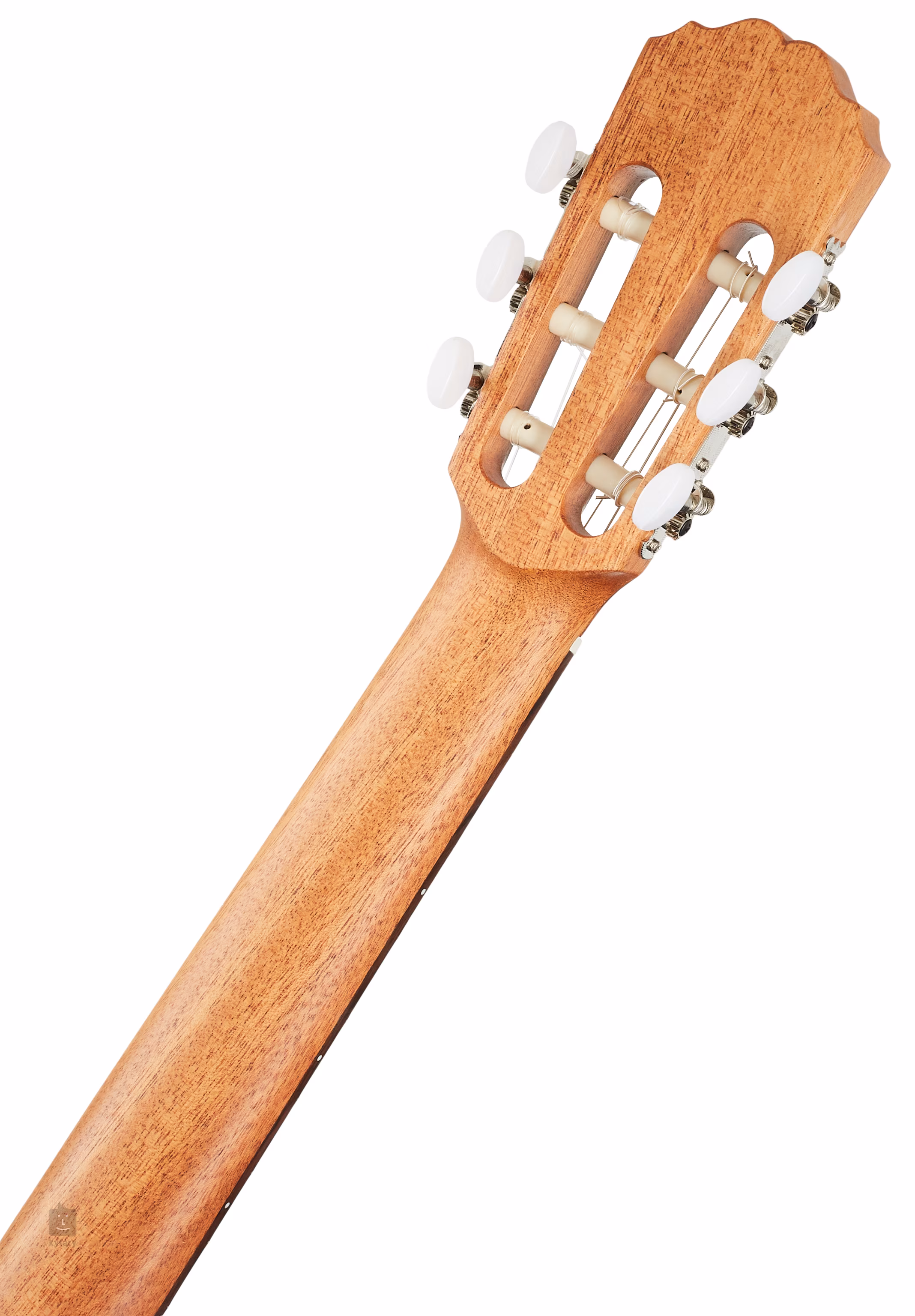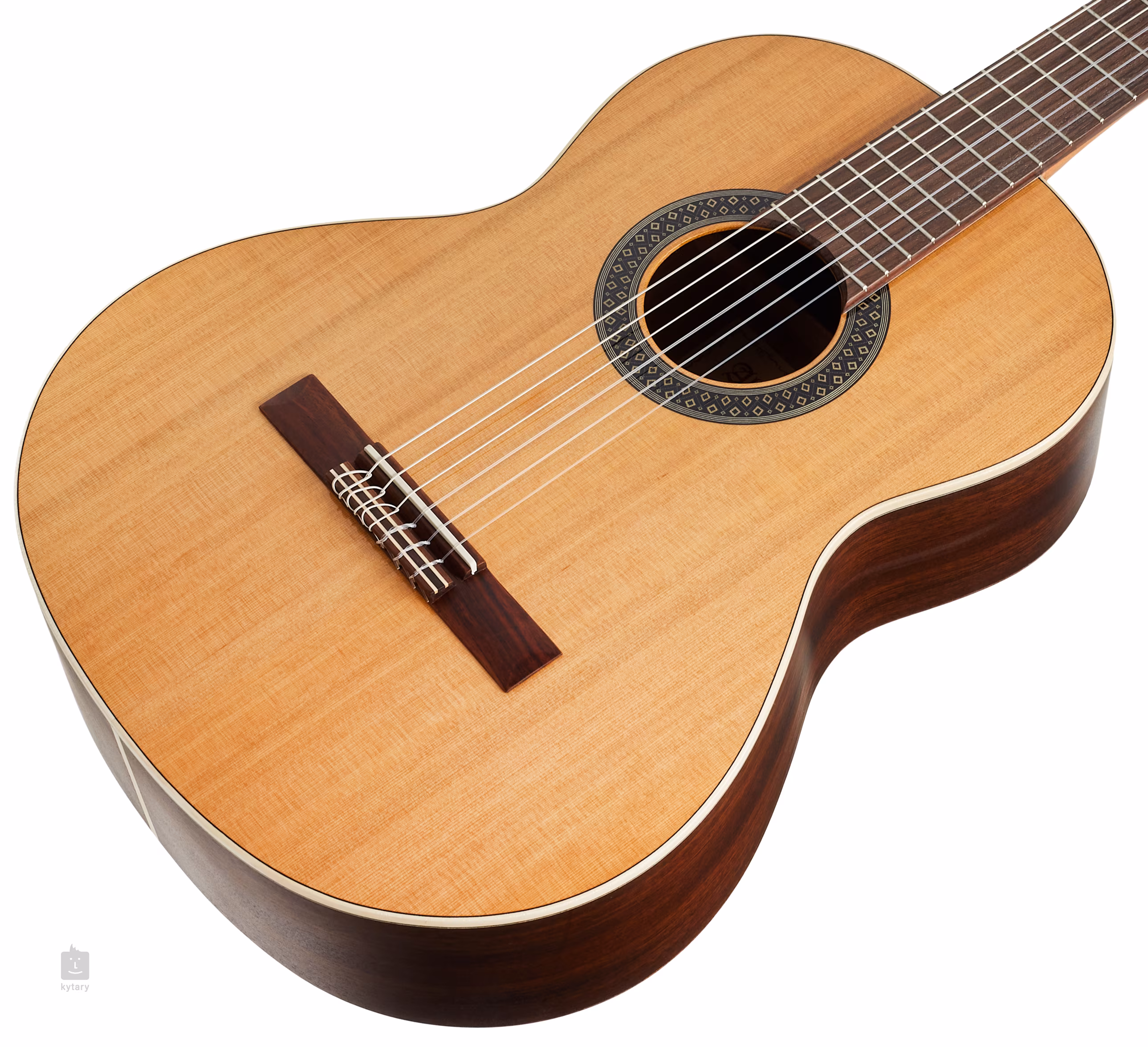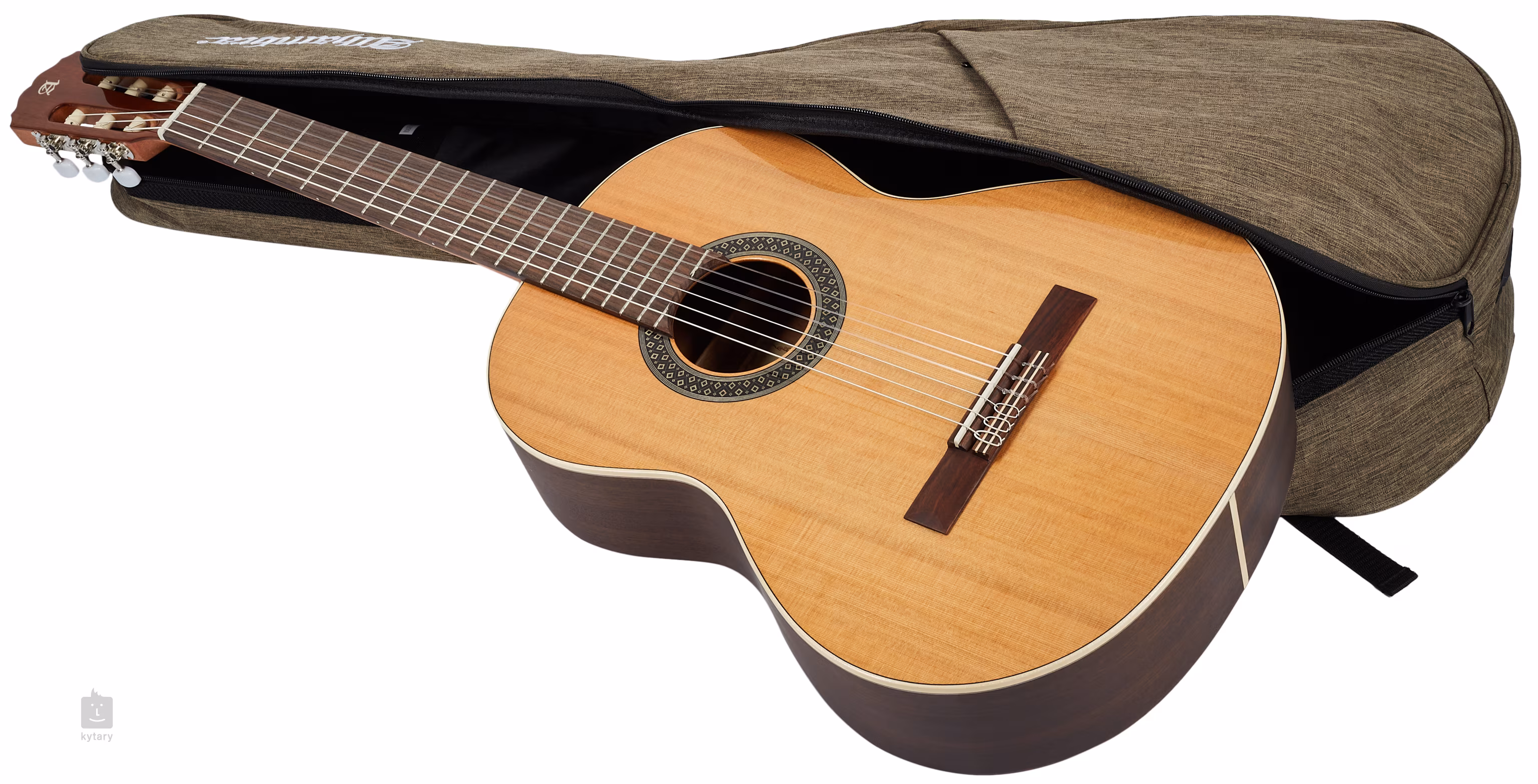 Přední deska modelu Alhambra 1 C HT v 7/8 velikosti je zhotovena z masivního červeného cedru, zadní deska a luby z překližovaného mahagonu. K mahagonovému ergonomicky tvarovanému krku je přilepen palisandrový hmatník osazený pražci z pakfongu/alpaky. Struny jsou přes nultý a sedlový pražec ze syntetického materiálu uchyceny v poniklovaných ladících mechanikách a palisandrové kobylce. Pěkné zpracování podtrhuje javorová obvodová lemovka těla a firemní logo na hlavici kytary.