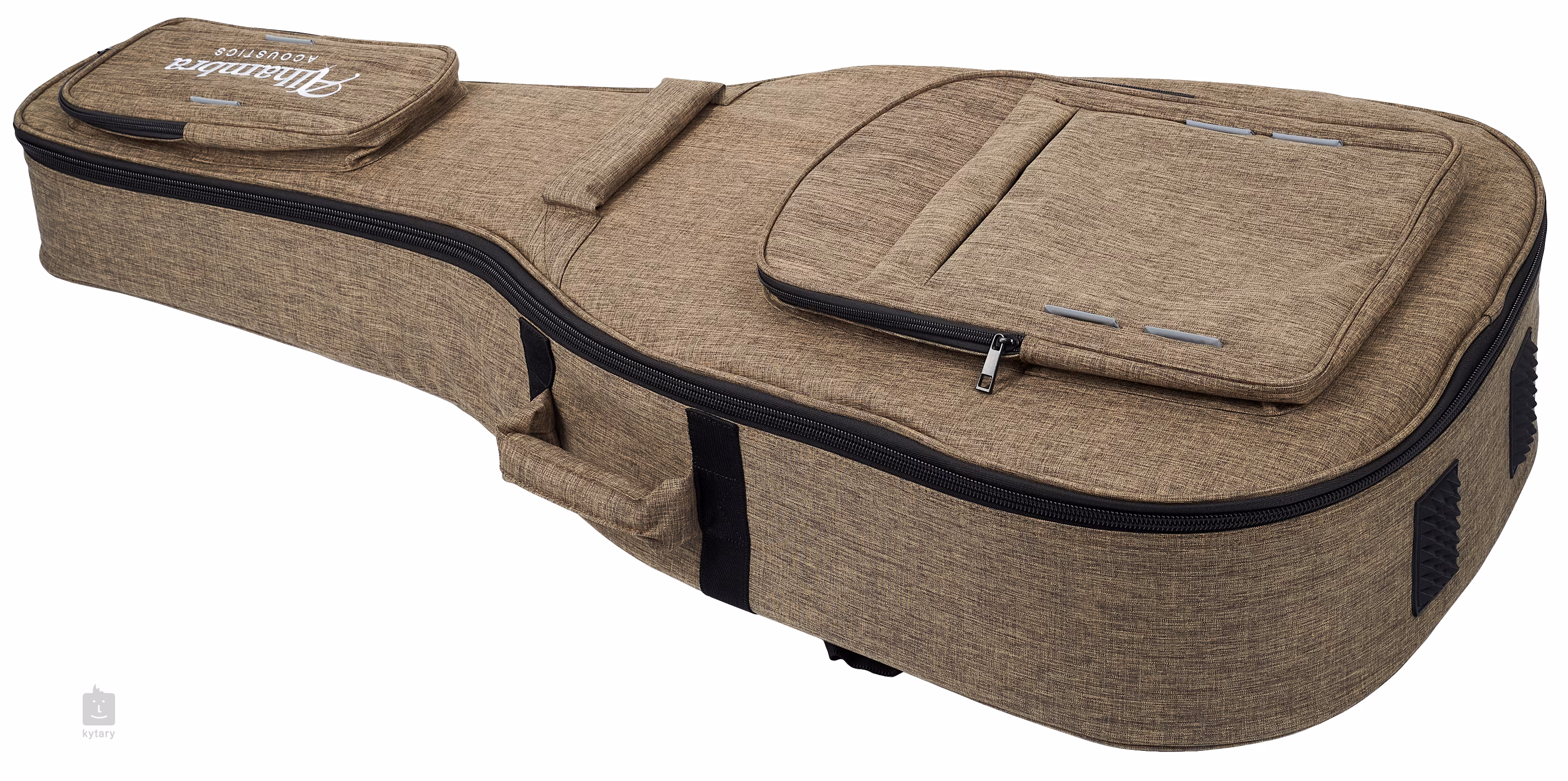 Obaly od firmy Alhambra si skvěle rozumí s nástroji této španělské značky, stejně dobře však poslouží i k uložení a transportu akustických kytar typu Dreadnought, Auditorium a Jumbo od jiných výrobců. Tento luxusní model z řady Premium je vyroben z odolného a nepromokavého PVC a vybaven 25 milimetrů silným polstrováním s přídavnou výztuhou krku, můžete se tedy spolehnout, že vaše kytara bude v bezpečí v každé situaci. Obal je doplněn trojicí rozměrných kapes k uložení příslušenství, polstrovaným madlem a nastavitelnými zádovými popruhy pro snadné přenášení. Nechybí také decentní reflexní bezpečnostní prvky.