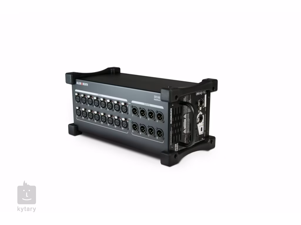 ALLEN&HEATH dLive DX168 je přenosný stagebox rozšiřující počet vstupů a výstupů v rámci systému dLive (kompatibilita s MixRacky a pulty řady S Class a C Class), Avantis, SQ a AHM-64. Nabízí 16 mikrofonních předzesilovačů s LED indikací fantomového napájení a 8 linkových výstupů. K jednomu dLive systému lze připojit až 6 expandérů DX168, 4 přes MixRack a 2 přes ovládací pult, a navýšit počet konektorů o dálkově řízených 96 vstupů a 48 výstupů. Připojení k mixpultu, MixRacku a dalšímu expandéru DX probíhá pomocí jednoho kabelu Cat5e, redundantní propojení s kompatibilním hardwarem a řetězení s dalším expandérem DX168 je realizováno skrze další ethernetový port.