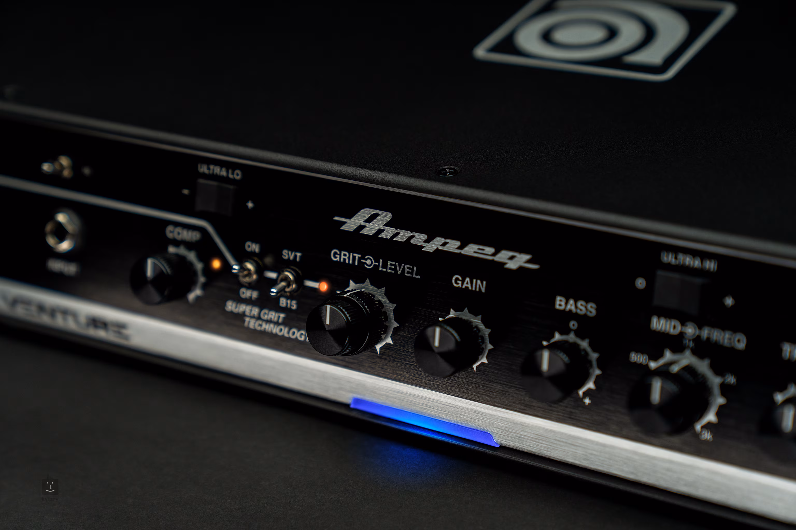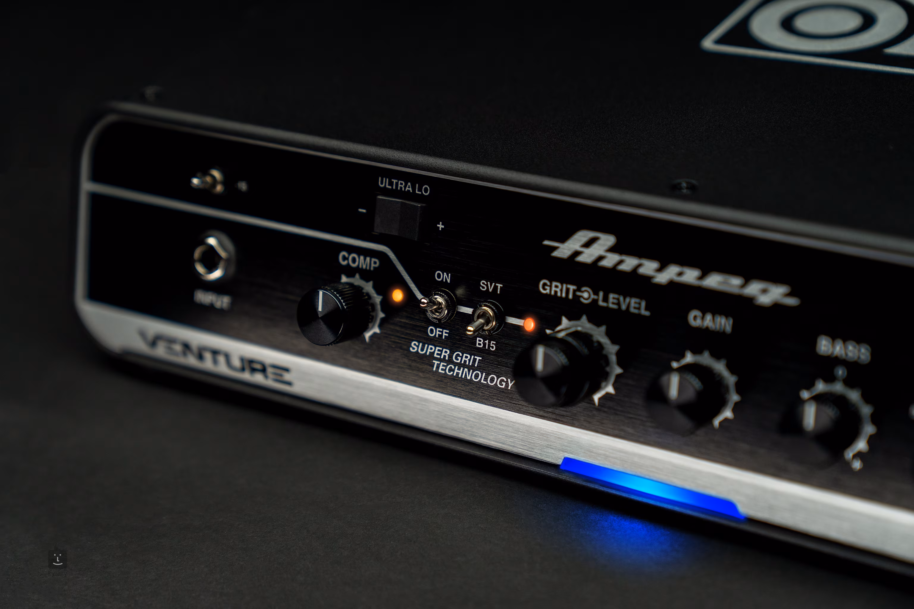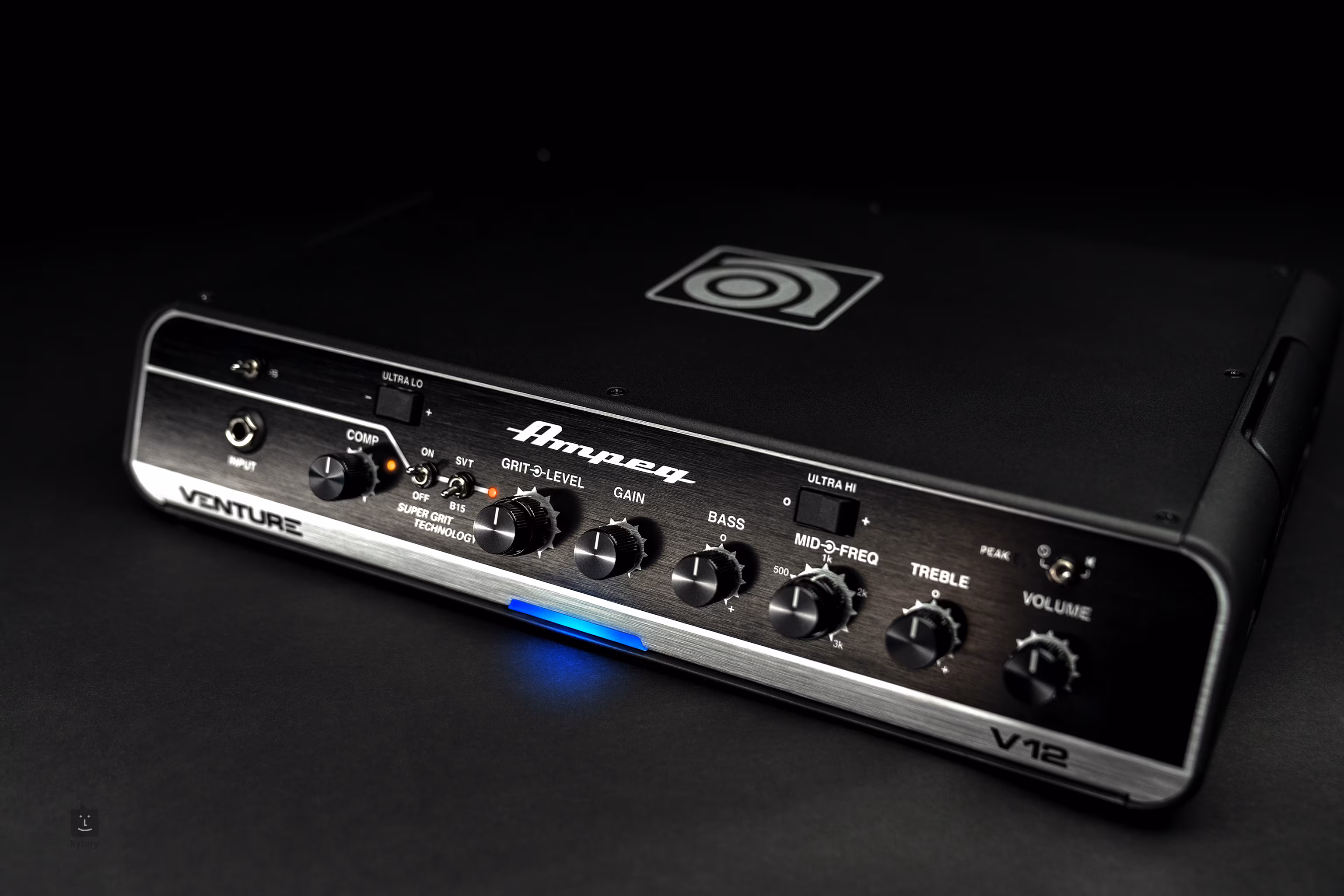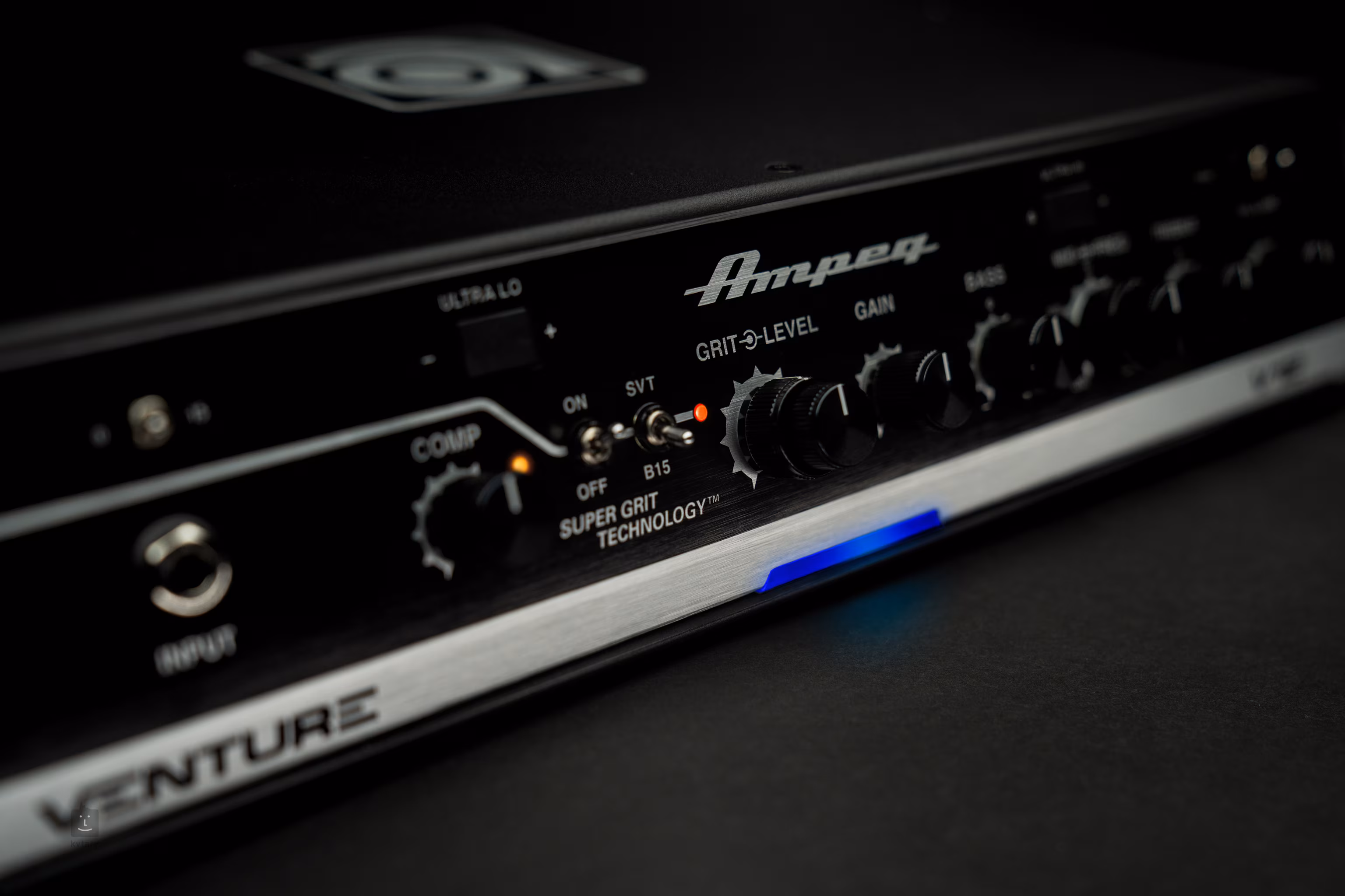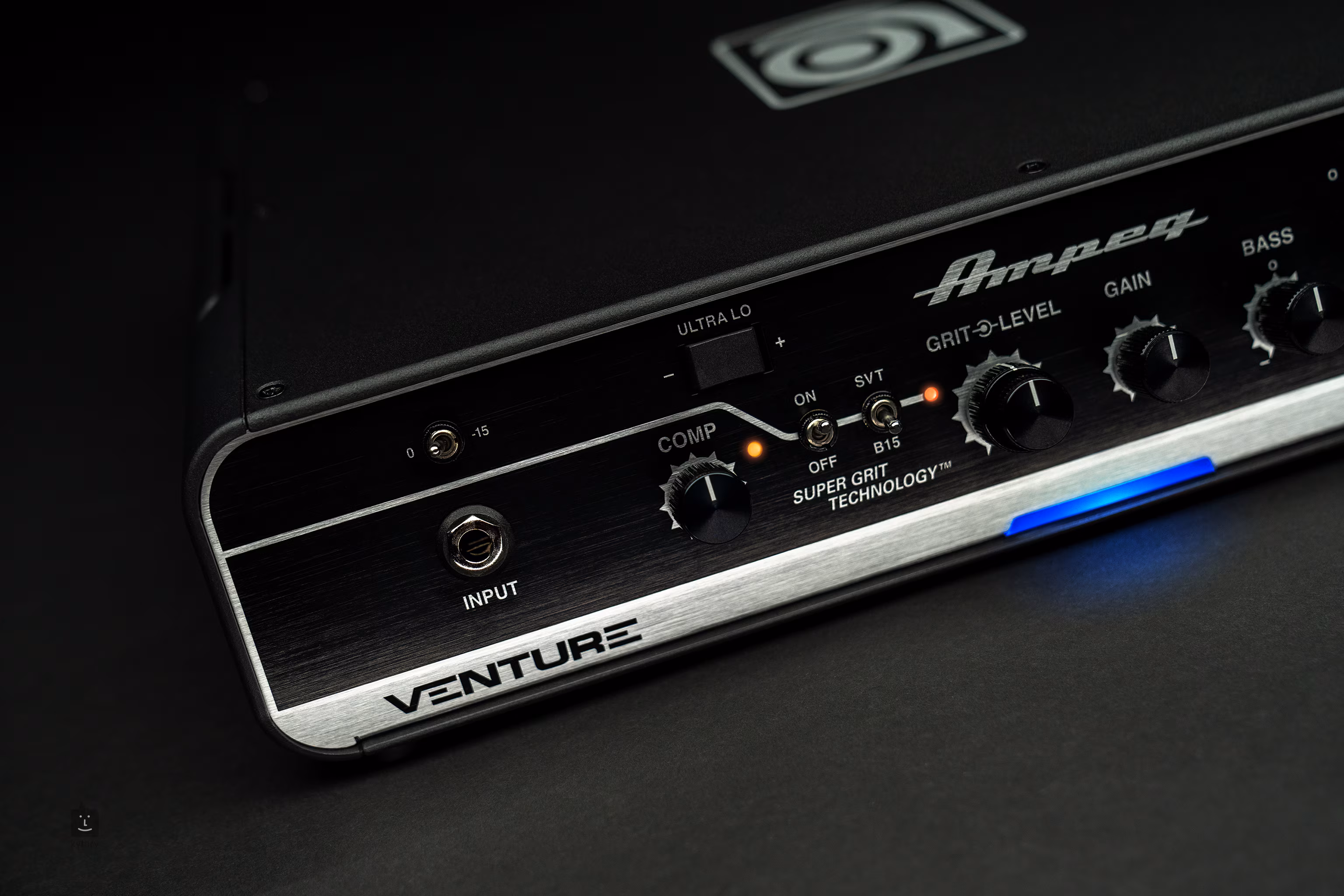Ampeg představuje Venture Series – V12, V7 a V3 basové hlavy, které přinášejí soudobý styl a vlastnosti, které vyhledávají současní baskytaristé. Tyto basové hlavy jsou vybaveny snadno použitelnými a intuitivními ovládacími prvky, které zahrnují rozsáhlou škálu nástrojů pro úpravu tónu, jako je třípásmový EQ s proměnnými středy, přepínače Ultra Hi a třípozicový Ultra Lo, a obvod Super Grit Technology (SGT) Overdrive se zvukovými charakteristikami SVT a B15.