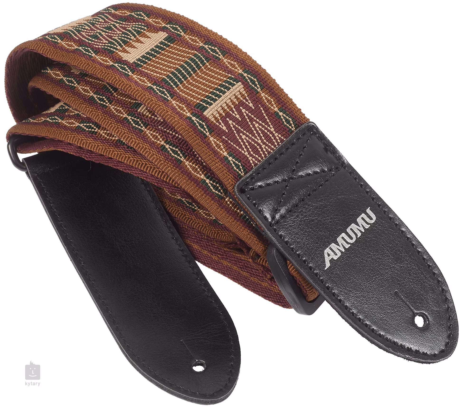 Brown Diamond Retro Chevron Strap je popruh vyrobený z odolného nylonu na zadní straně a z polyesteru na straně přední. Délka je nastavitelná a hodí se pro většinu hráčů. Zároveň je díky tomu možné použít tento popruh, kromě kytary a baskytary, například na ukulele nebo mandolínu. Konce jsou z kůže pro kvalitní uchycení nástroje. Součástí balení je také tkanice pro případ, že by váš nástroj osazen pouze jednou rolnou. Zdobený je vyšívaným vzorem.