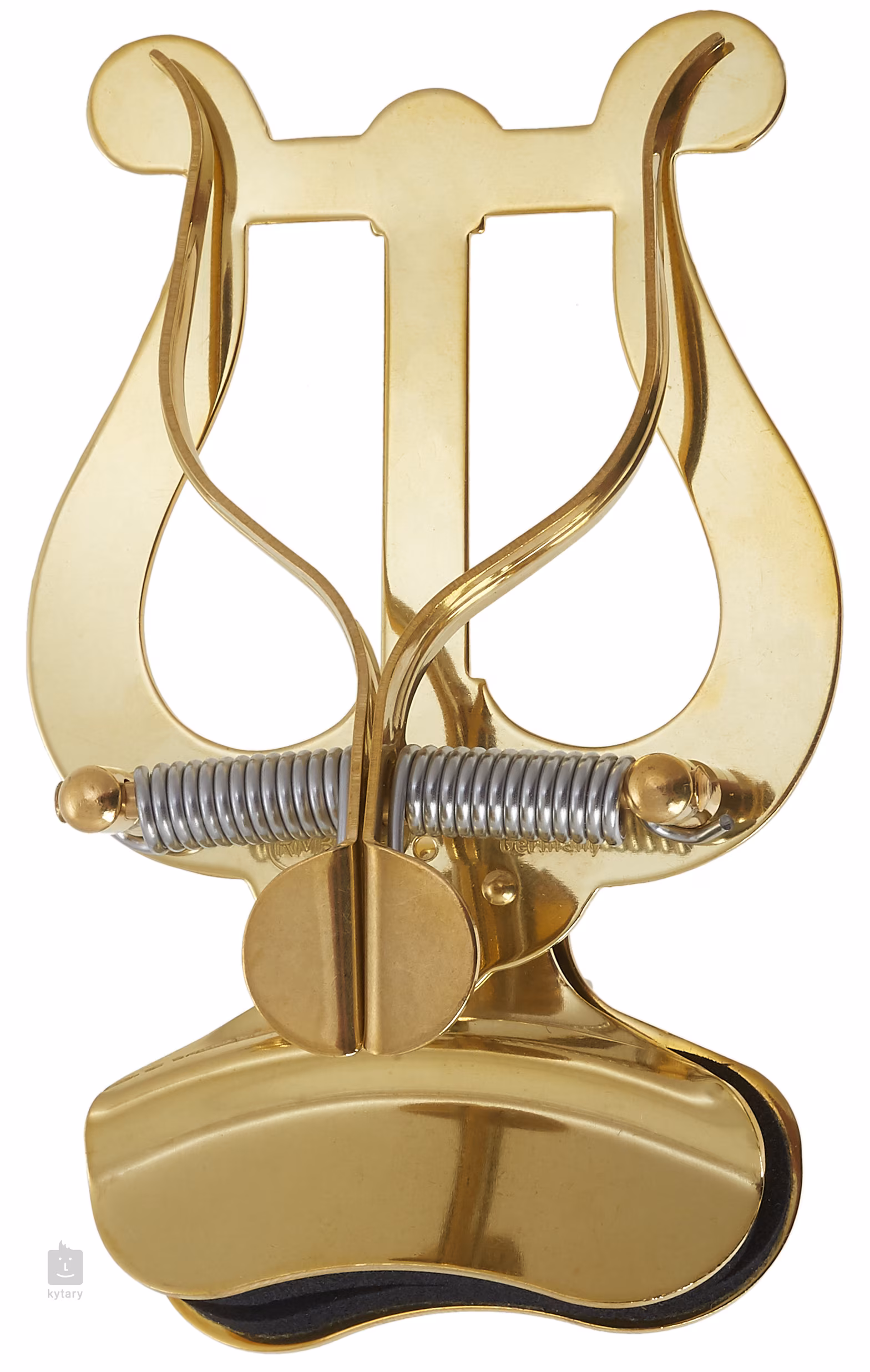 Mosazná lyra (držák not) na trubku velikosti Medium se dvěma tlakadly a připevněním k ozvučníku nástroje.