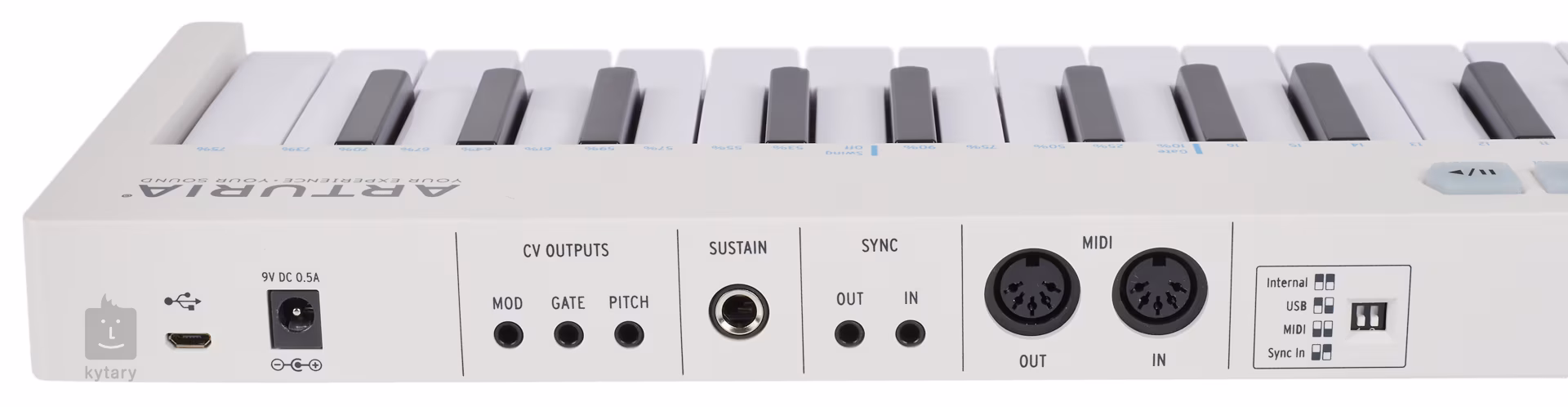 Co činí Keystep jedinečným kontrolérem je jeho rozšířená konektivita. Kromě standardního USB najdete i vstup a výstup pro MIDI, jacky pro synchronizaci hodin, DIN sync jacky, CV/Gate výstupy a samostatný CV výstup, kterému lze přiřadit ovladač Mod, dynamiku klaviatury nebo aftertouch. V praxi to znamená, že pomocí Keystepu můžete ovládat nejen software, ale i celou sbírku analogových syntezátorů a modulů, synchronizovat MIDI zařízení etc. USB port při připojení k počítači kontrolér napájí, pokud ho chcete používat samostatně, můžete připojit adaptér.