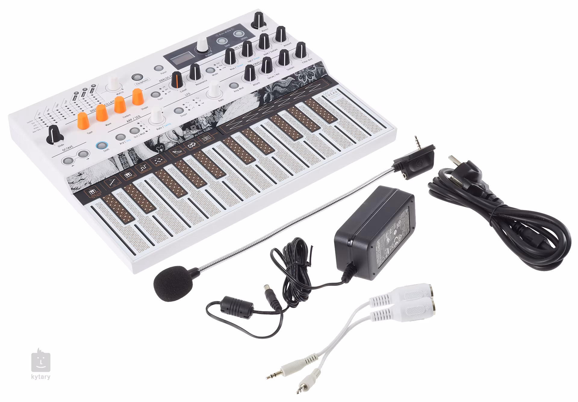 Arturia Microfreak Vocoder je limitovaná edice originálního syntezátoru s digitálními oscilátory, analogovým filtrem a zvuky z oblíbeného eurorack modulu Plaits od Mutable Instruments. Série Vocoder navíc obsahuje odnímatelný mikrofon na husím krku pro vytváření melodických vokálních linek. Funguje v monofonním i parafonním režimu, zaujme plochou klaviaturou s polyfonním aftertouch a nepostrádá sekvencér, arpreggiator, modulační matrix ani pokročilé random funkce. V této cenové kategorii jde rozhodně o jeden z nejzajímavějších nástrojů.