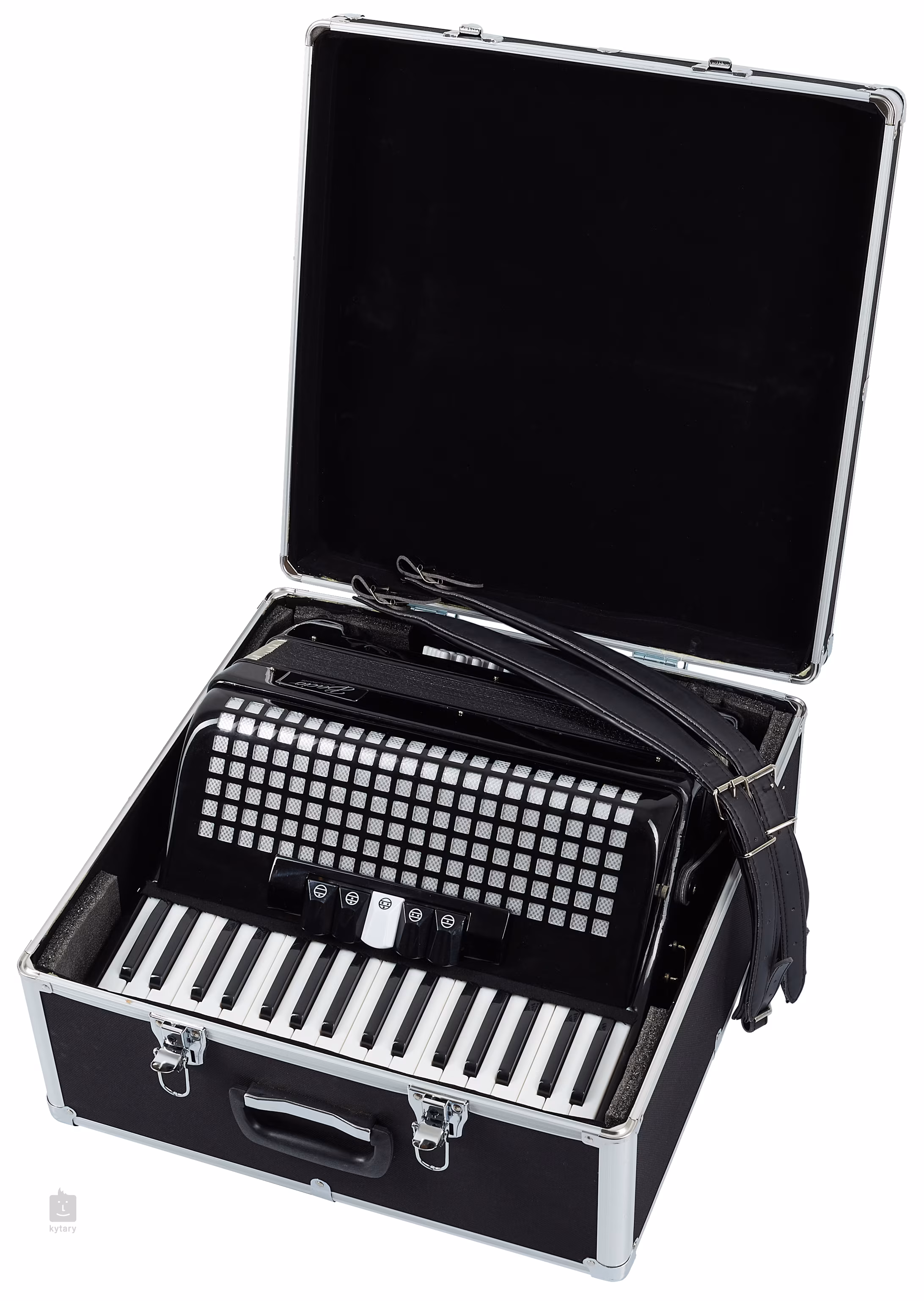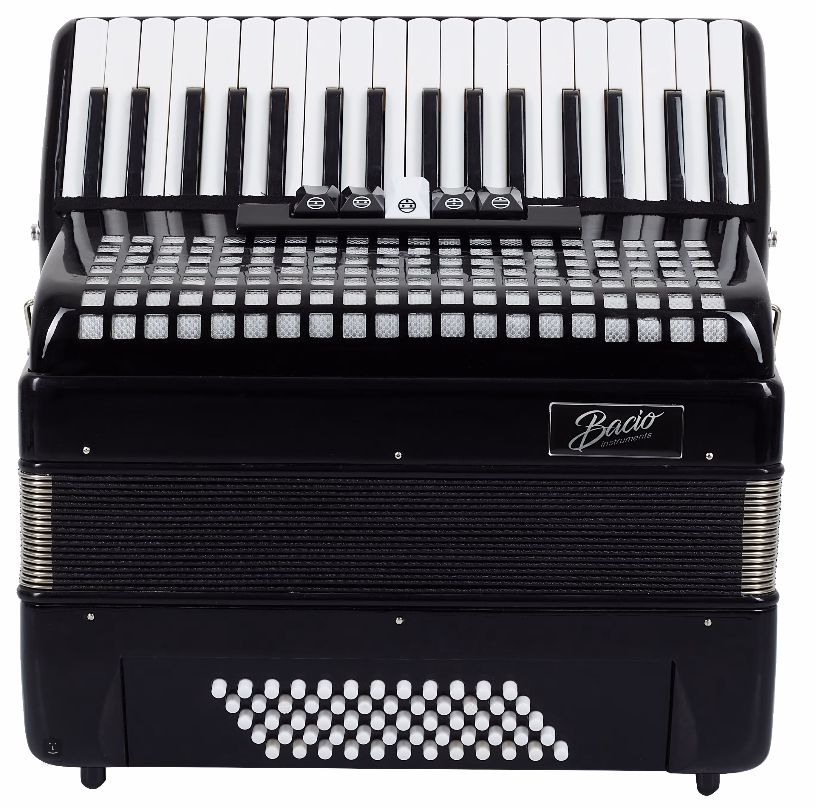 Značka Bacio nabízí cenově dostupné hudební nástroje vhodné pro úplné začátečníky. Klávesový akordeon AT3460 je dodáván v hliníkovém casu.