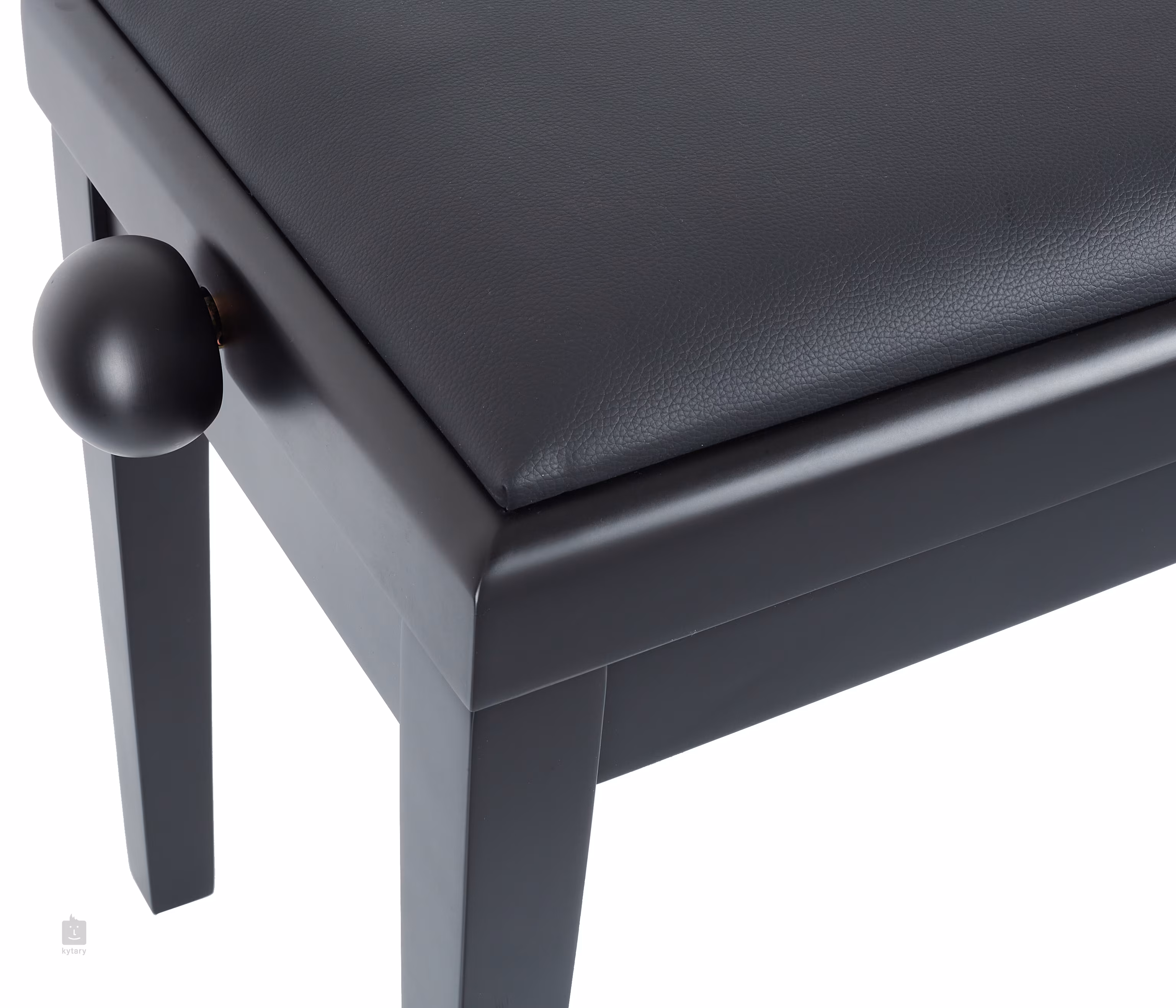 Klavírní stolička v elegantním černém provedení, která perfektně doplní téměř jakýkoliv interiér. Nastavitelná výška zajistí ideální přizpůsobení pro každého hráče a pohodlný sedák se postará o dokonalý komfort i při dlouhém cvičení. Stolička je dostupná v různých materiálech a barvách. Tato verze má matný koženkový sedák.