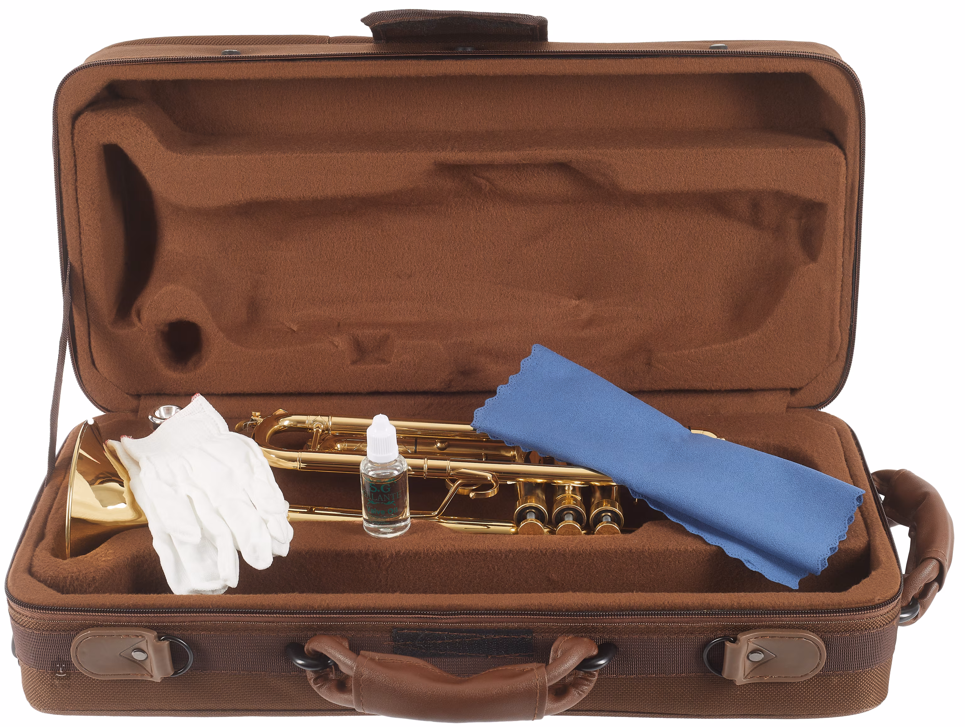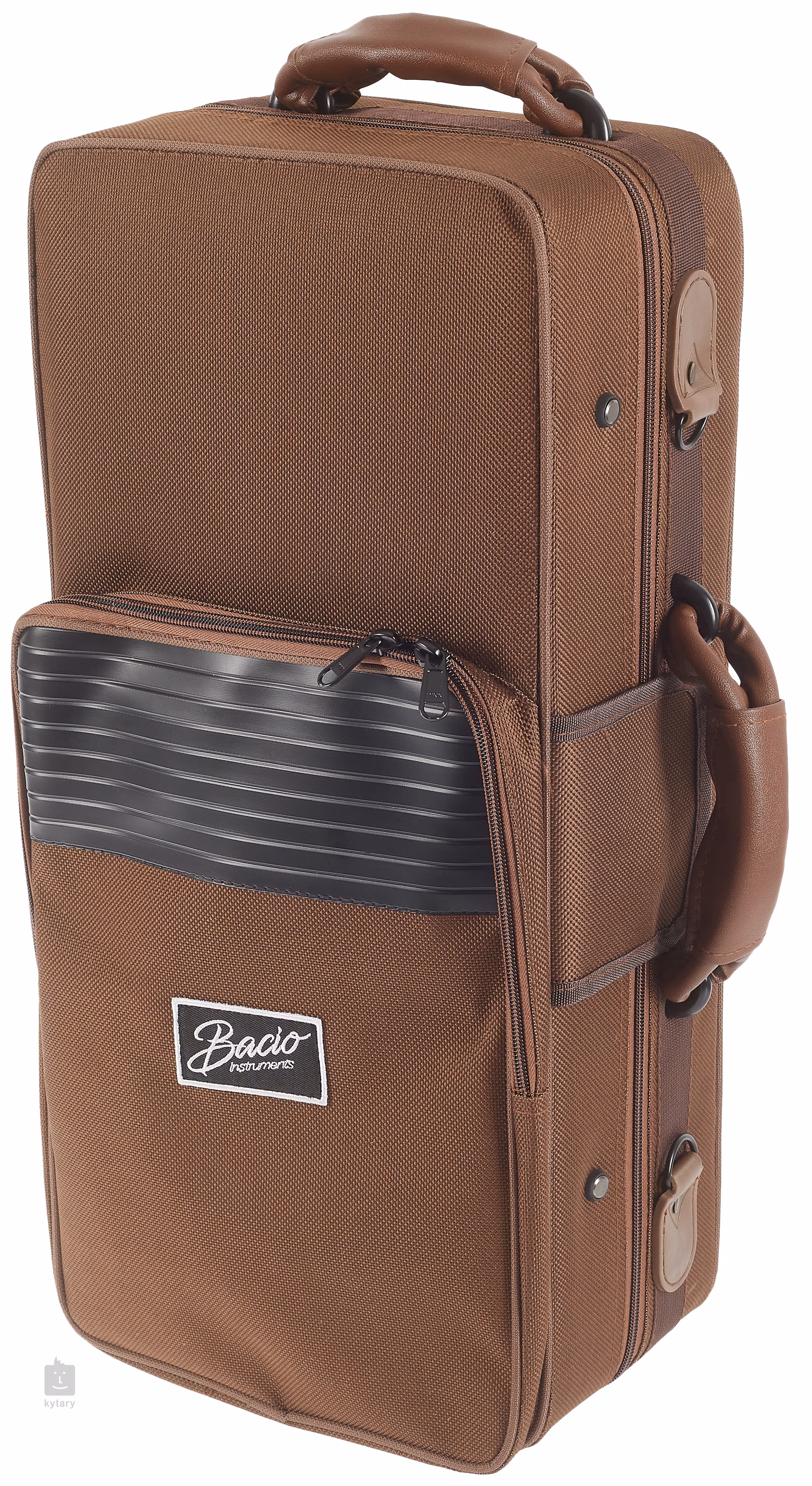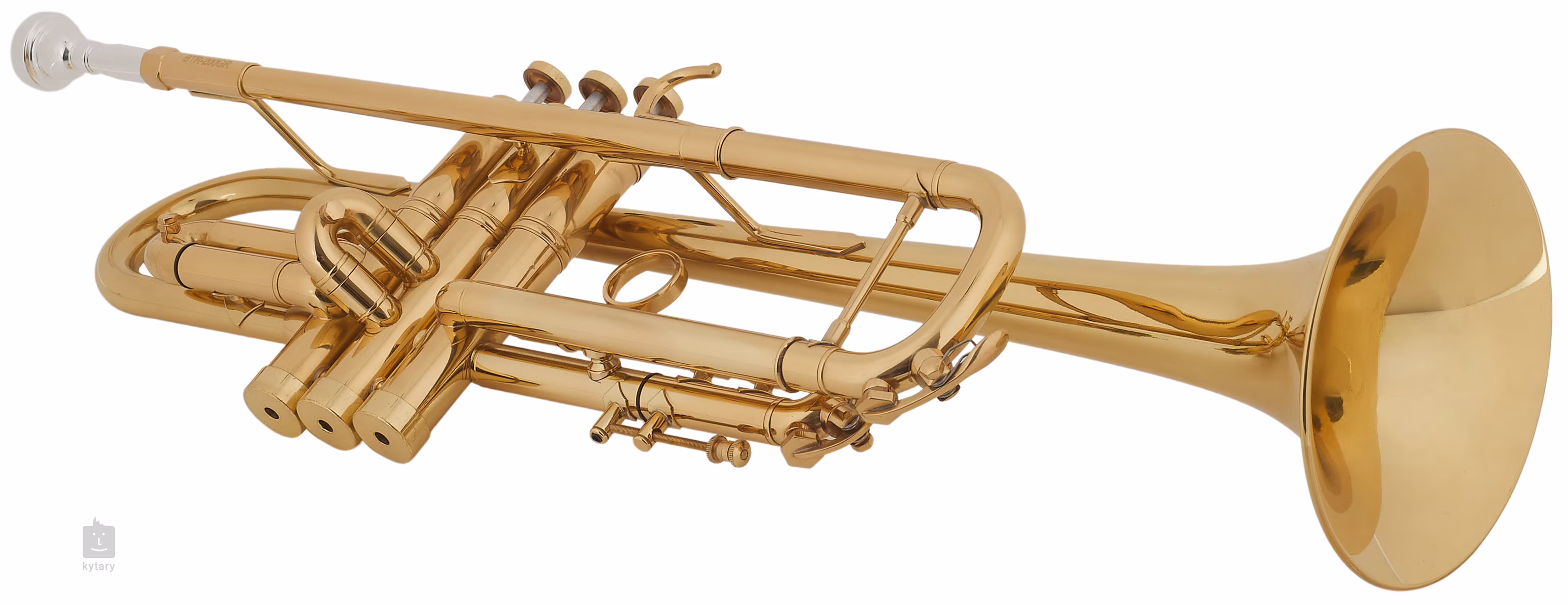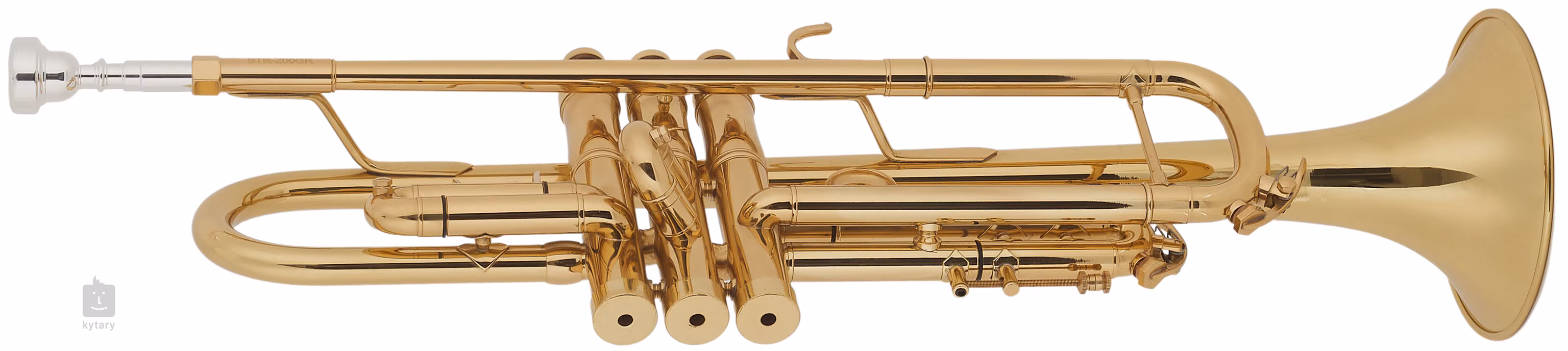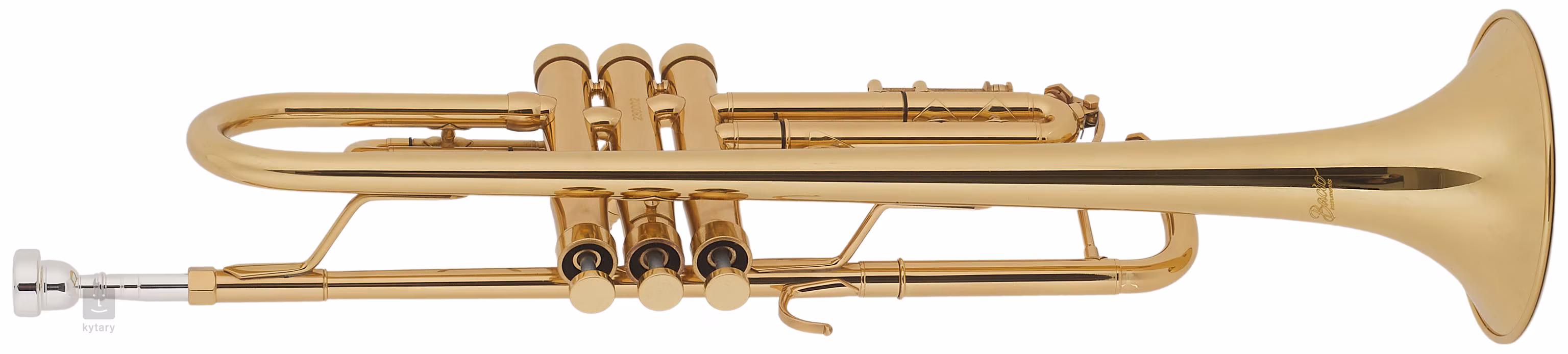 Cenově dostupná B trubka značky Bacio s mosazným korpusem, zlatomosazným lakem, pístovou mechanikou, opěrkami pro ruku na prvním a třetím dolaďovači a dvěma vodními klapkami. Trubka je dodávána v kvalitním pevném pouzdru spolu s nátrubkem a příslušenstvím (olejem na ventily, rukavicemi a hadříkem).