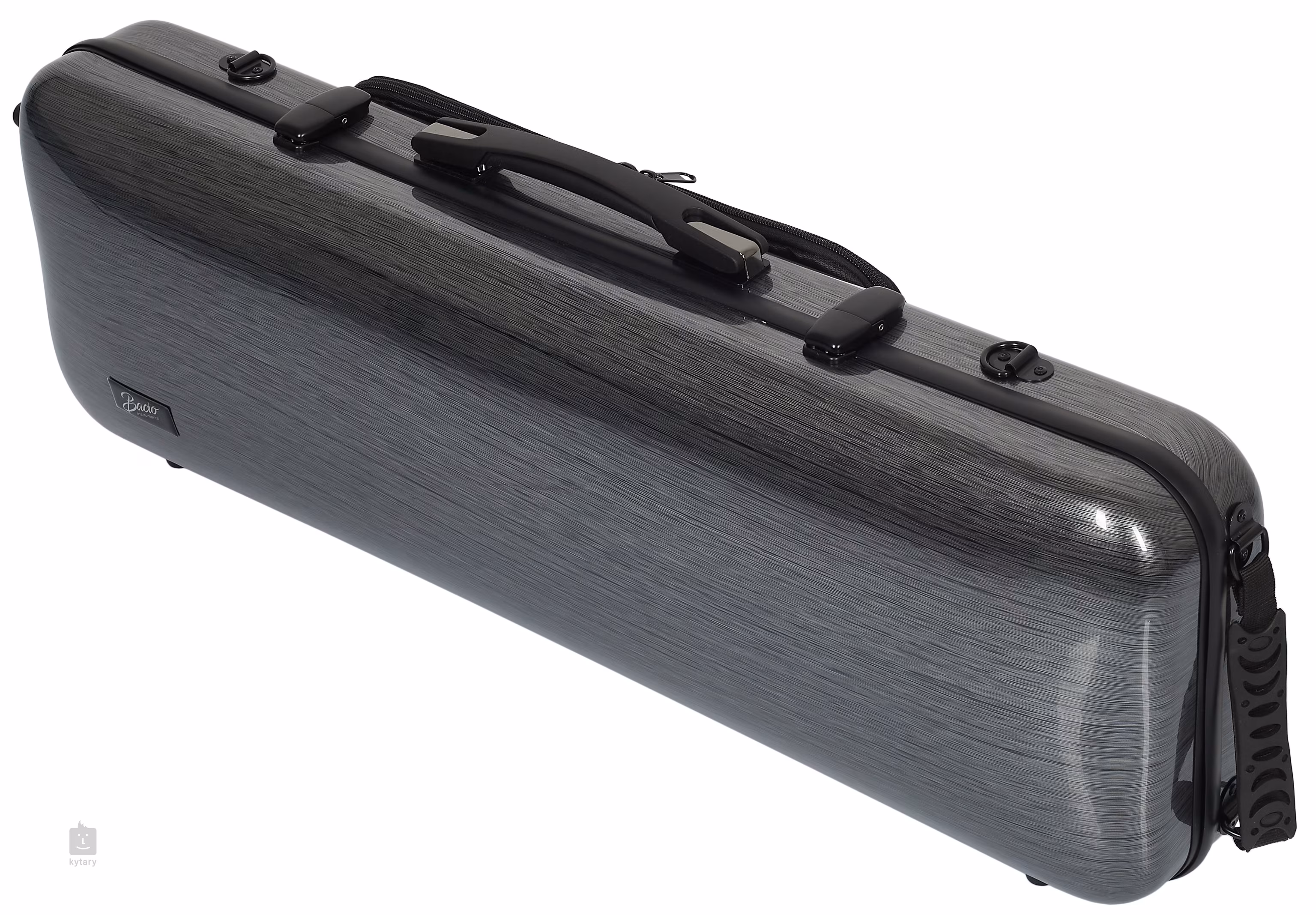Pouzdro na housle zhotovené z karbonového kompozitu s kovovým kováním, pohodlným držadlem, sametovým potahem vnitřku pouzdra, pouzdrem na noty, dvěma držáky pro smyčce a popruhem.