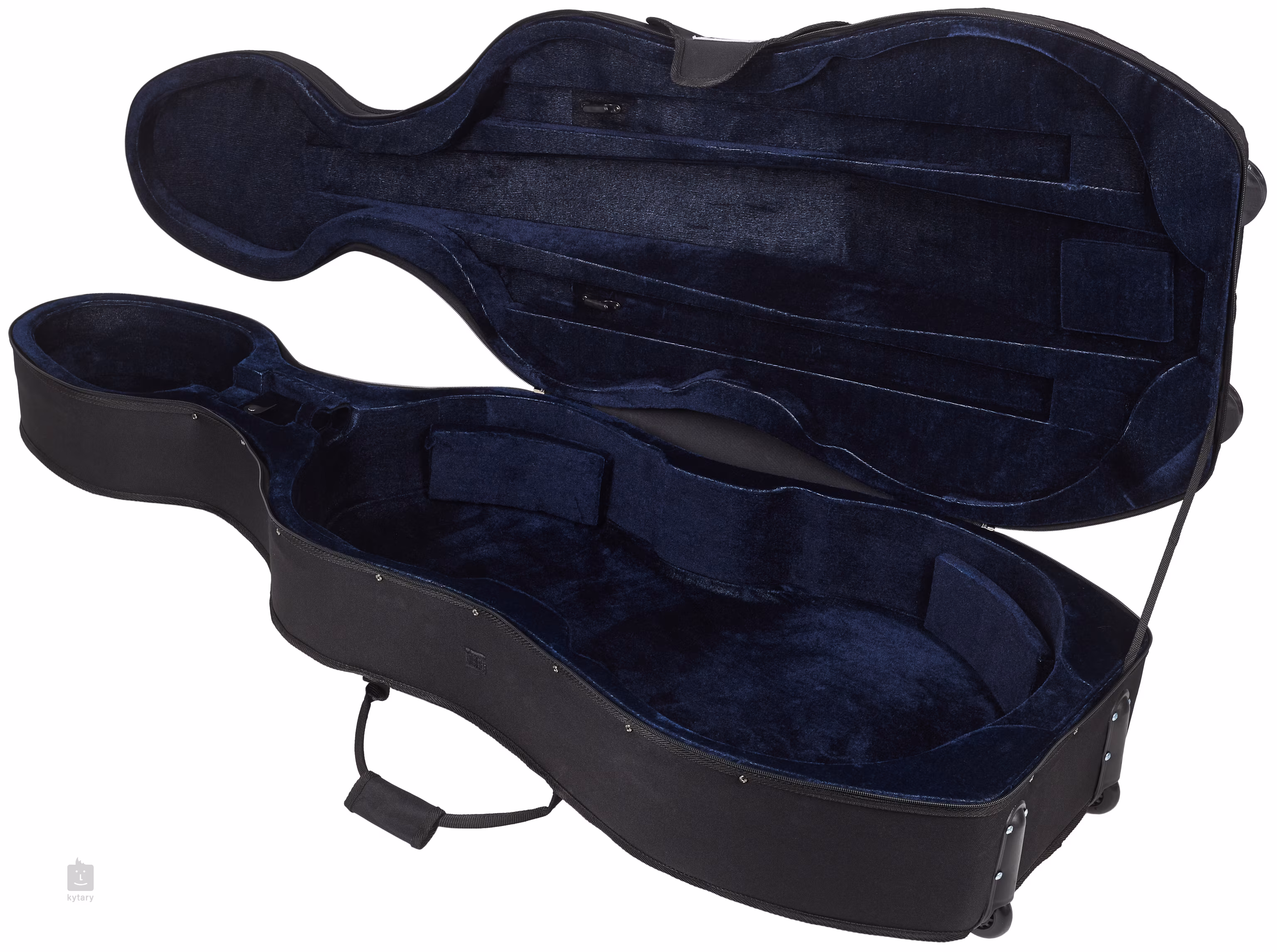 Obal na violoncello velikosti 4/4 zhotovený z vodovzdorné pěnové hmoty nabízí vnitřní sametový potah pro větší pohodlí nástroje, externí kapsu pro drobné příslušenství, dva držáky na smyčce a kolečka pro snadný transport.
