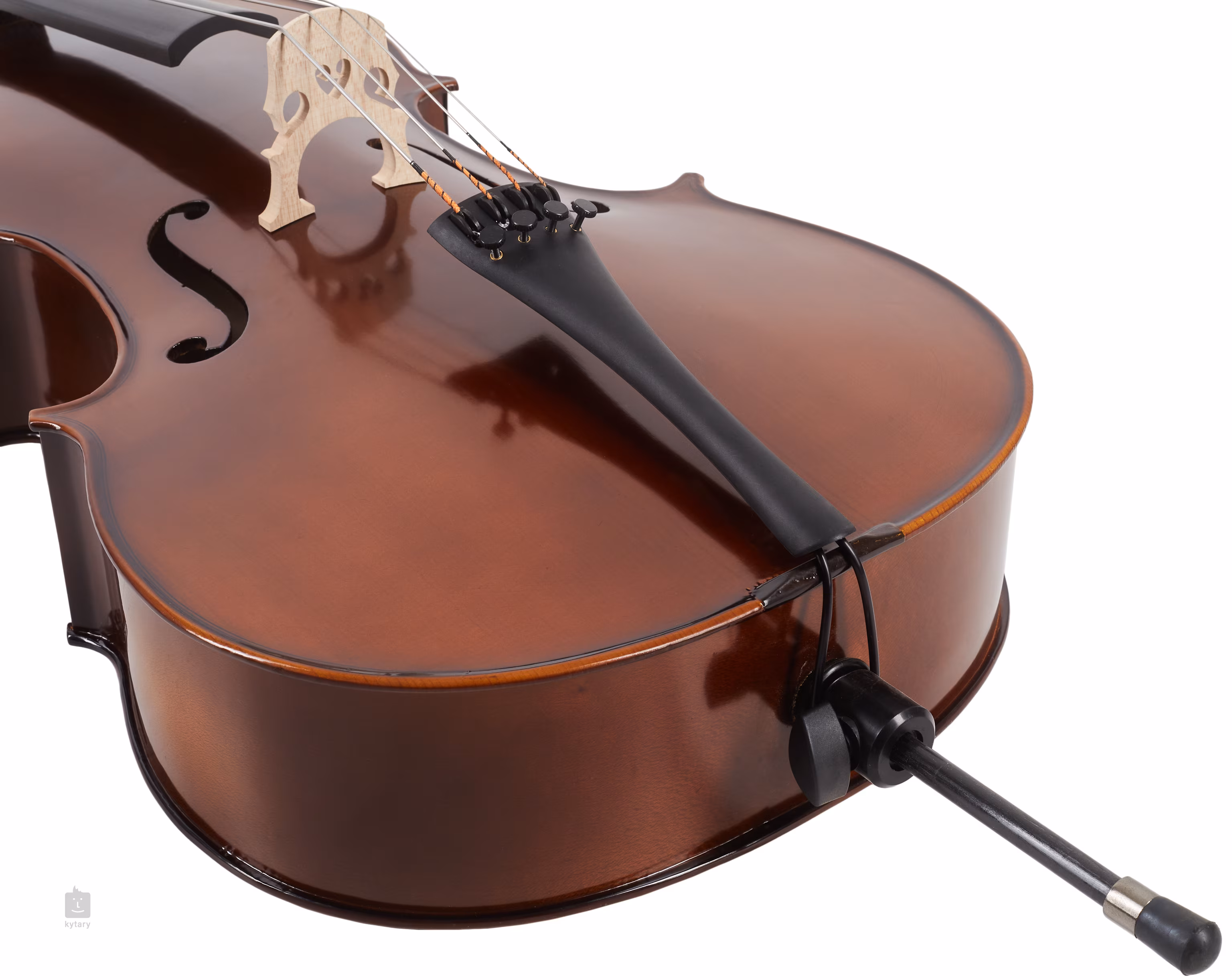 Toto ručně vyráběné violoncello je ideální volbou zejména pro začínající, ale i pokročilejší hráče, kteří hledají kvalitní nástroj za dostupnou cenu. Vrchní deska je tradičně vyrobena z výběrového smrkového dřeva, zadní deska a boky jsou javorové. Garnitura i hmatník jsou z ebenového dřeva, kovový struník je pak vybaven precizními dolaďovači. Kromě samotného nástroje najdete v balení také smyčec s ebenovou žabkou a přepravní obal s polstrováním o síle 10 mm.