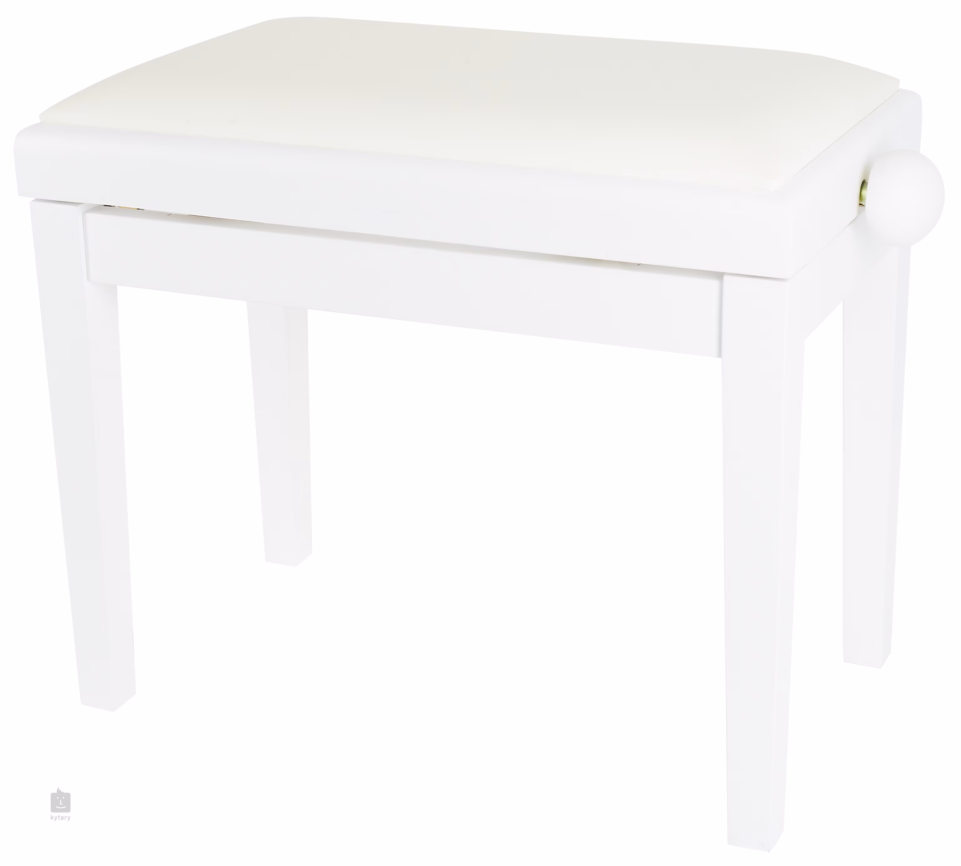 Klavírní stolička v elegantním bílém provedení, která perfektně doplní téměř jakýkoliv interiér. Nastavitelná výška zajistí ideální přizpůsobení pro každého hráče a pohodlný sedák se postará o dokonalý komfort i při dlouhém cvičení. Stolička je dostupná v různých materiálech a barvách. Tato verze má matný vinylový sedák.