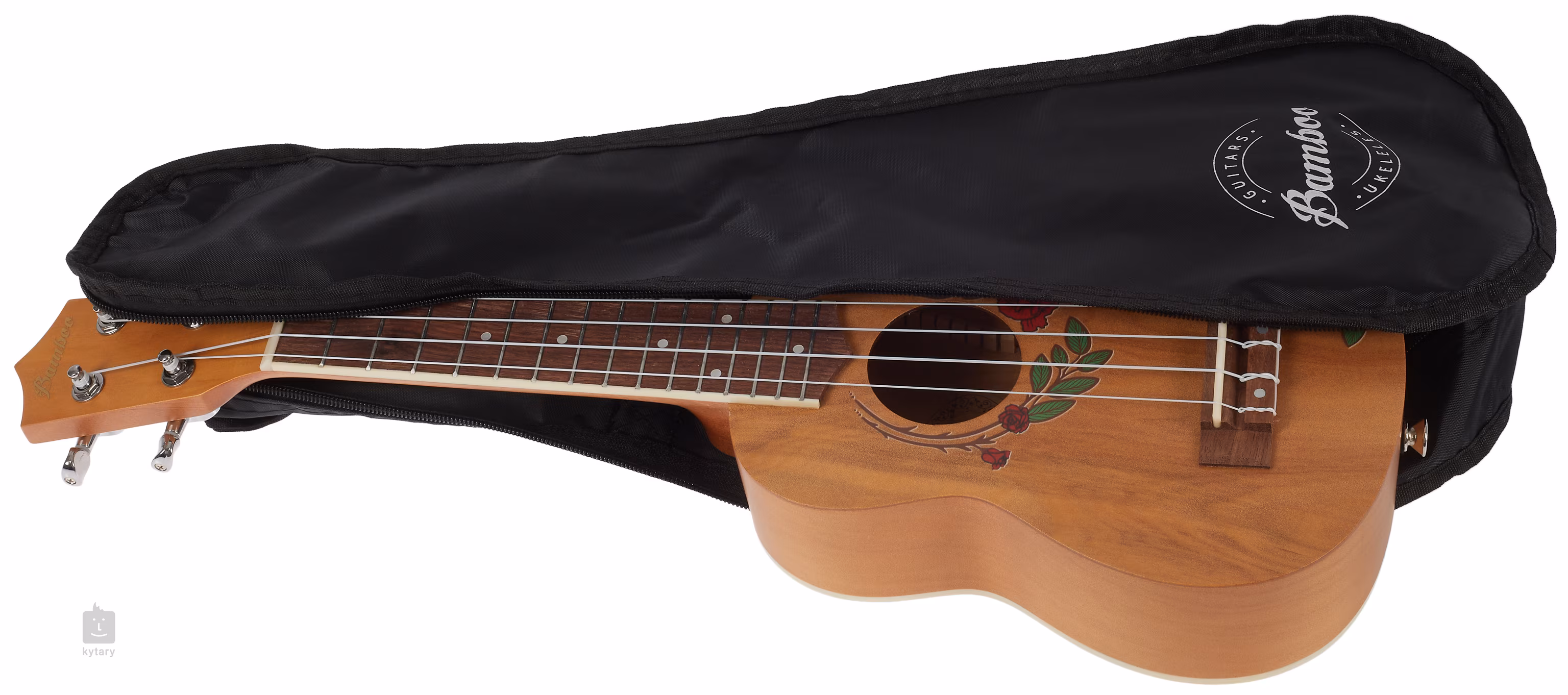 Řada New Generation značky Bamboo představuje cenově dostupná ukulele v koncertní a sopránové velikosti ozdobená pestrobarevnými grafickými motivy. Sopránové ukulele s označením U-21 ROSES nabízí tělo zhotovené z lipové překližky, krk z okoumé, hmatník a kobylku z ořechu a uchycení strun přes nultý a sedlový pražec z kosti v mechanikách kytarového typu. Nástroj je dodáván v obalu.