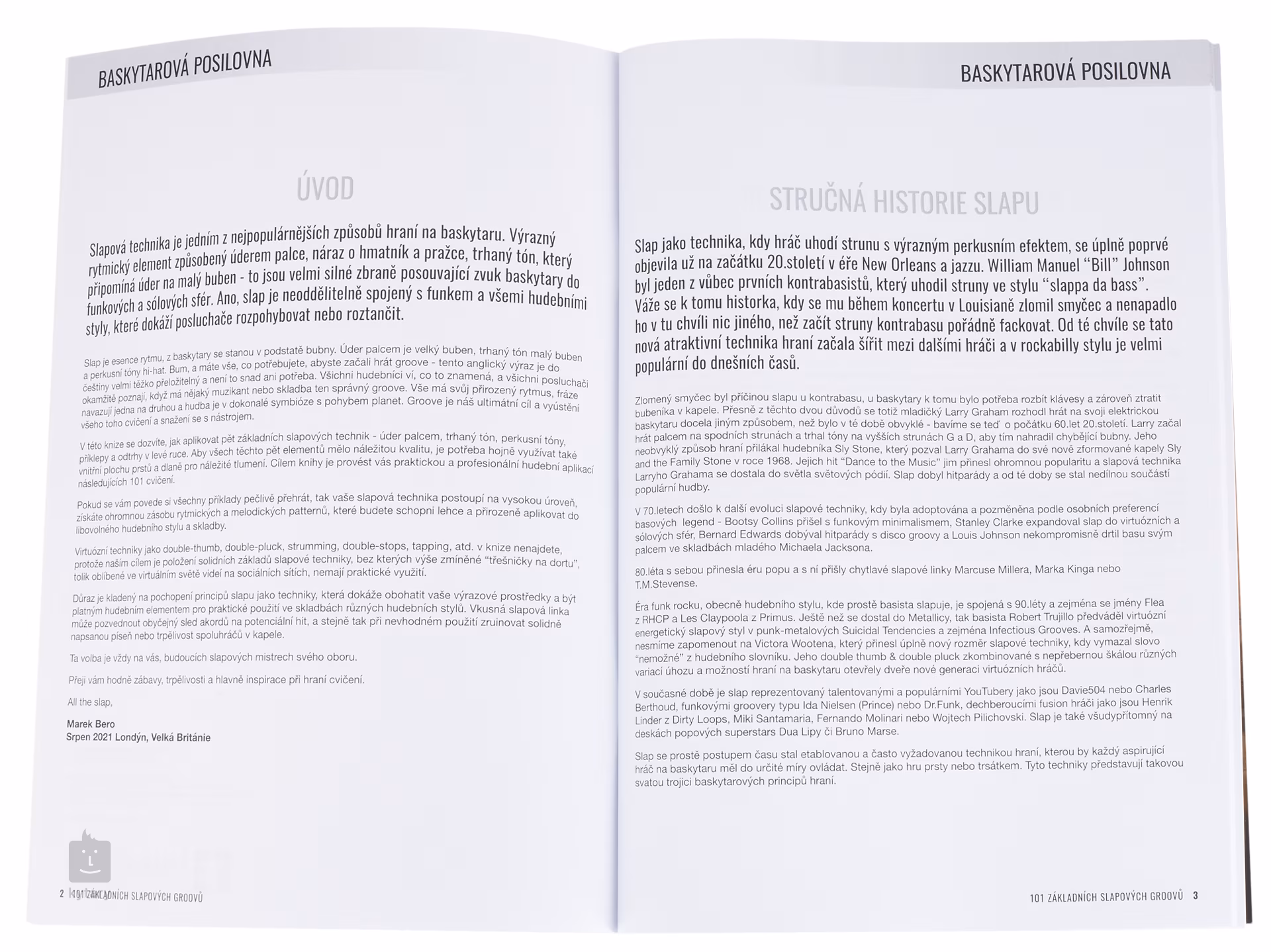 Tento nový díl zpracovává slapovou techniku - hlavně z pohledu začátečníku/mírně pokročilých a s důrazem na praktické použití (příklady různých hudebních stylů a slavných hráčů) ve skladbách a v kapele. V knize se dozvíte, jak aplikovat pět základních slapových technik - úder palcem, trhaný tón, perkusní tóny, příklepy a odtrhy v levé ruce. Aby všech těchto pět elementů mělo náležitou kvalitu, je potřeba hojně využívat také vnitřní plochu prstů a dlaně pro náležité tlumení. Cílem knihy je provést vás praktickou a profesionální hudební aplikací následujících 101 cvičení.