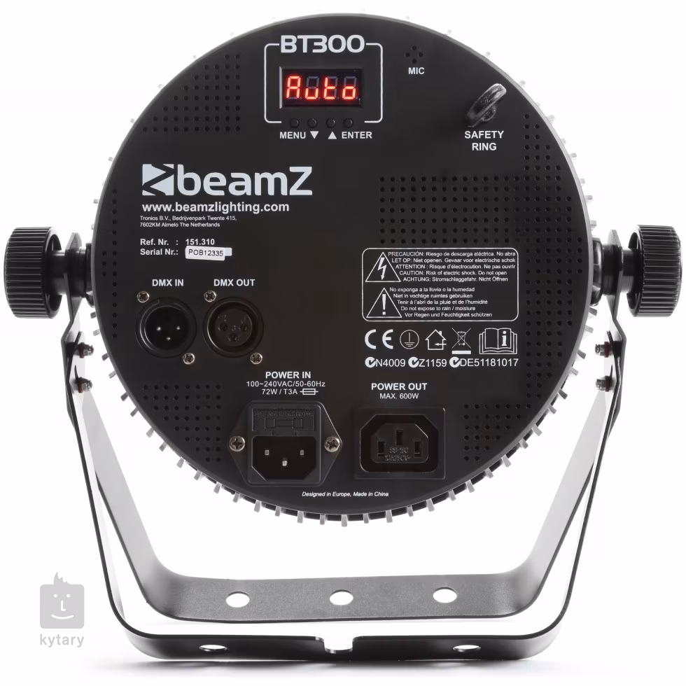 K ovládání můžete využít standardní protokol DMX512 se 2, 3, 4, 6 nebo 10 kanály. K dispozici jsou také automatické programy, zvukem ovládané programy s nastavitelnou citlivostí mikrofonu a režim Master/Slave. K manuálnímu nastavení poslouží přehledný ovládací panel s displejem a tlačítky. Přístroj podporuje také dálkové ovládání pomocí infračerveného ovladače, který je součástí balení. Snadné propojení zajišťují 3pinové DMX konektory a univerzální napájecí konektory IEC. Konstrukce reflektoru je vyrobena z bytelného a odolného ABS plastu, který se stará o dlouhou životnost přístroje. Kovové držáky vám umožní přimontovat reflektor na pódiovou konstrukci nebo jej umístit na zem.