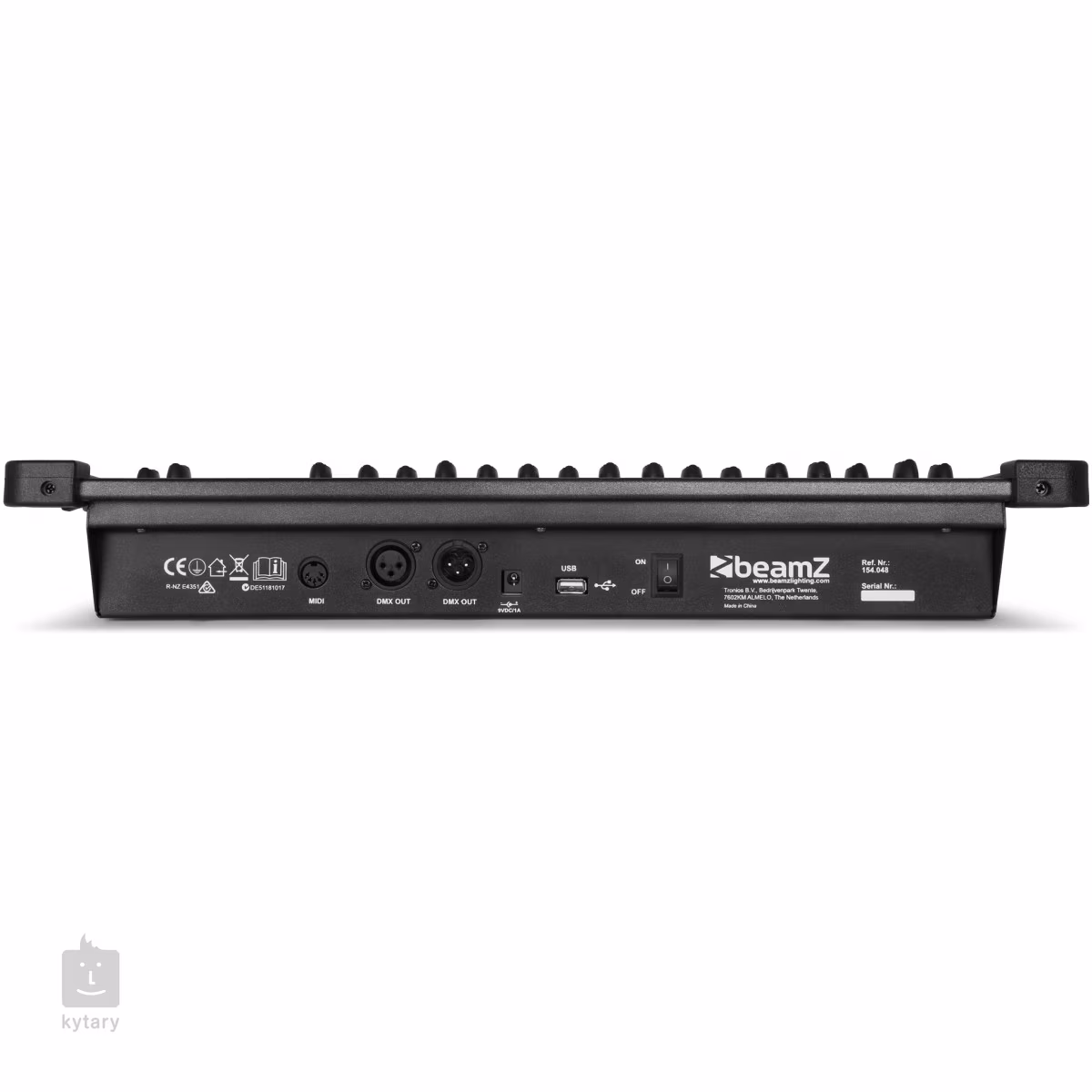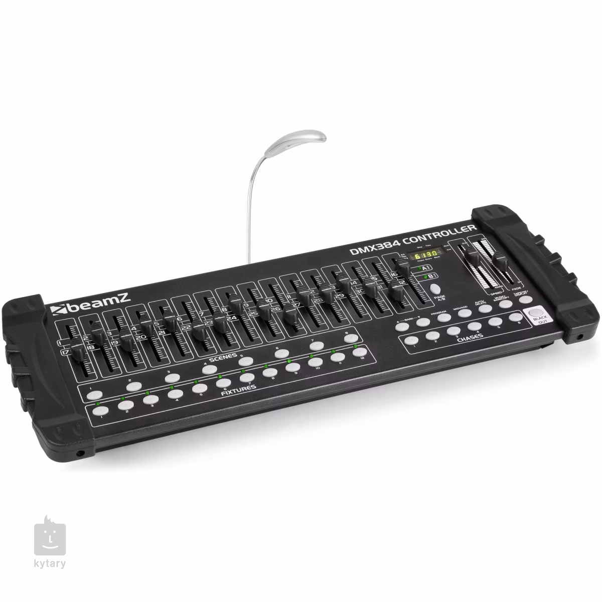 DMX-384 od společnosti BeamZ je profesionální DMX kontroler, který nabízí zlatou střední cestu mezi rozsáhlými možnostmi ovládání a kompaktními rozměry. Umožní vám řídit 12 svítidel současně a u každého z nich ovládat až 32 kanálů. Celkově tedy zvládne až 384 kanálů. Kromě toho vám umožní naprogramovat až 240 scén a vytvářet z nich sekvence neboli chases. K dispozici je 8 paměťových bank pro scény (každá pojme 30 scén) a 6 sekvencí (každá sekvence může obsahovat až 240 kroků).