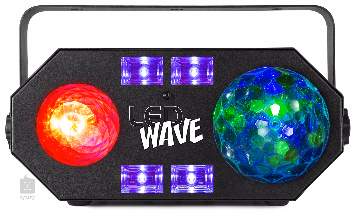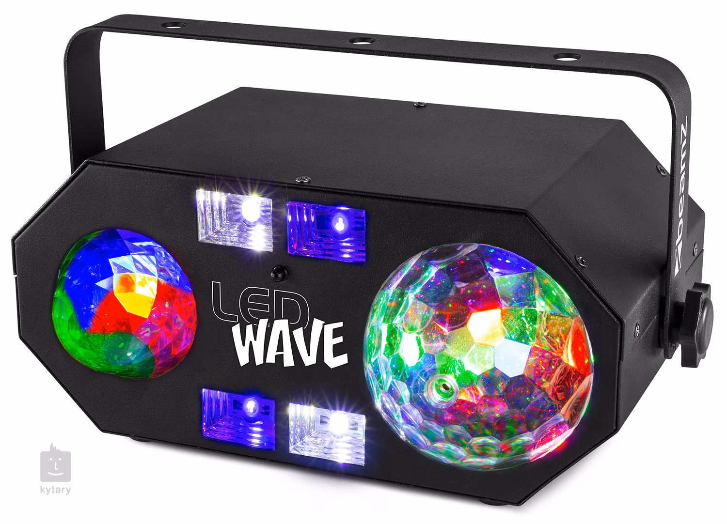 Světelný zdroj zde tvoří celkem tři sekce: paprsková kupole s šesti 3W LED diodami, vodní kupole jednou 4W LED diodou typu RGBW a čtyři centrální LED diody typu W a UV (dvě bílé a dvě ultrafialové). LEDWAVE se díky své flexibilitě uplatní v celé řadě aplikací, ať už se jedná o taneční parkety, noční kluby, bruslařské arény nebo domácí večírky. Vzhledem k jeho nízké hmotnosti a kompaktním rozměrům (240 x 130 x 112 mm, 1,6 kg) jej využijete také pro mobilní aplikace.