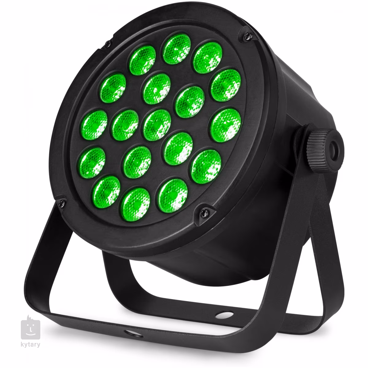 LED PAR reflektor SlimPAR45 od společnosti beamZ je kompaktní přístroj o hmotnosti necelého jednoho kilogramu, který využijete pro mobilní akce i fixní instalace. Jeho světelný zdroj tvoří osmnáct 3W LED diod typu RGB 3v1, které poskytují bohaté možnosti mixování barev. Každý z pixelů lze programovat zvlášť a vytvářet tak různá barevná schémata a kombinace. S vyzařovacím úhlem 12° reflektor produkuje rozptýlené wash osvětlení, které podtrhne atmosféru každé akce. Součástí výbavy je také stroboskopický efekt s nastavitelnou rychlostí blikání.