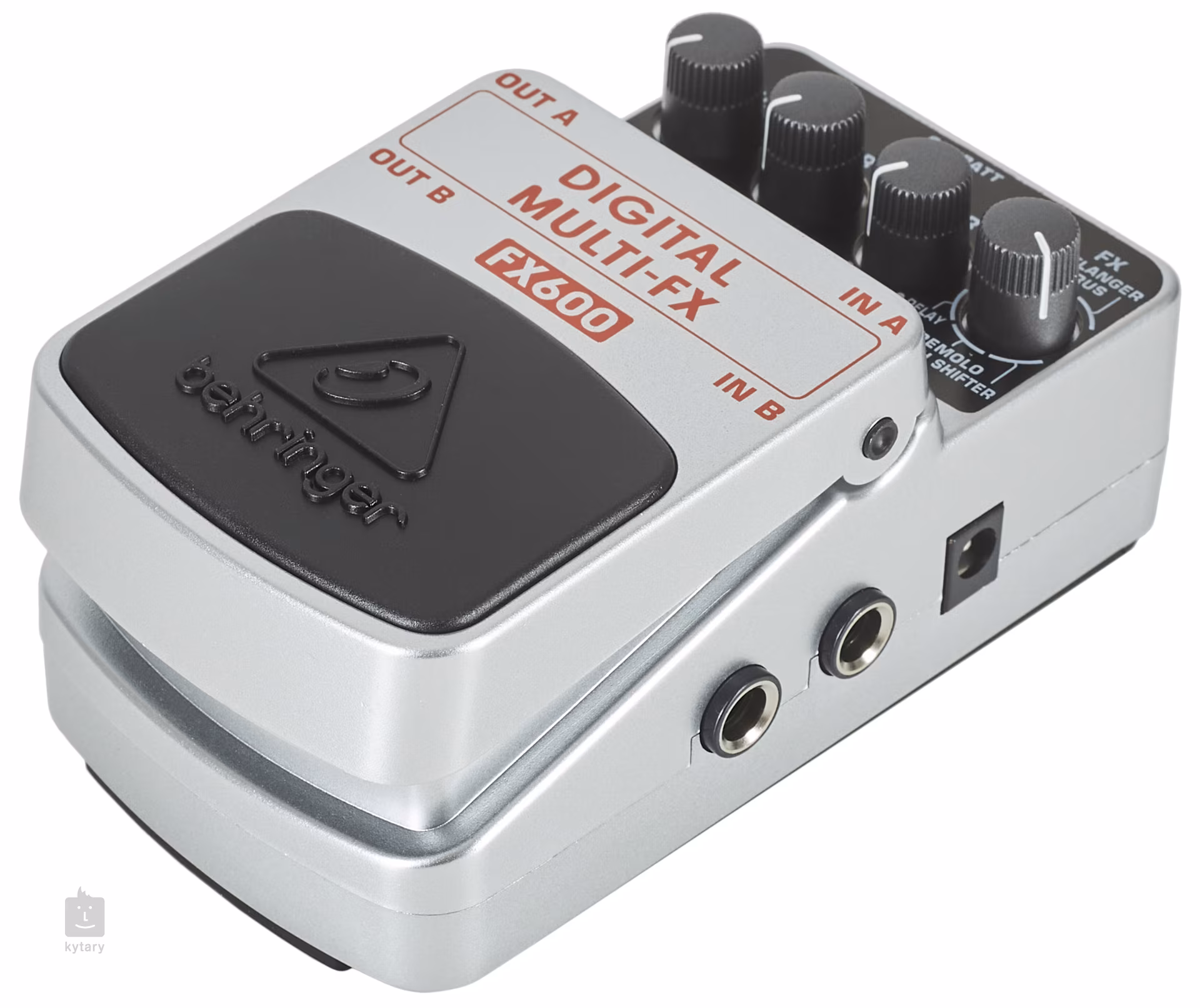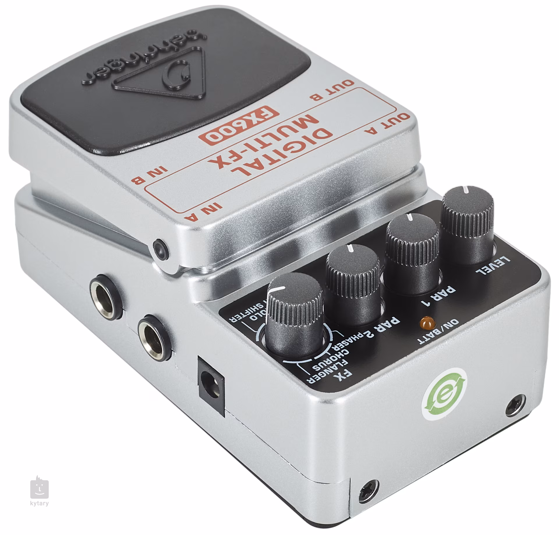 Digitální multiefekt s indikací zap./vyp. efektu a indikací stavu baterie, napájení 9V bat. nebo DC adapterém (není součástí).