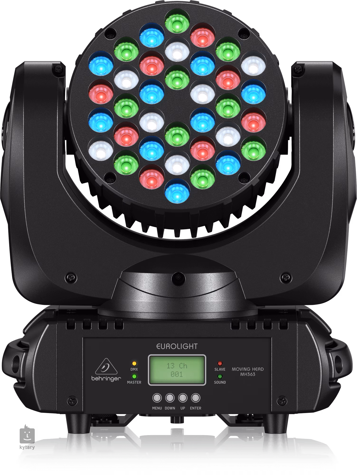Otočná hlava Behringer MOVING HEAD MH363 je designovaná pro široké spektrum využití, ať už potřebujete osvětlit koncertní pódium, hudební klub, divadelní scénu, diskotéku nebo jinou akci. Jedná se o profesionální svítidlo osazené třiceti šesti 3W CREE LED diodami typu RGBW, které poskytují bohaté možnosti míchání. Konkrétně se jedná o osm červených, deset zelených, deset modrých a deset bílých LED diod, které vám otevřou dveře k rozsáhlé škále odstínů. Výsledné světlo pak bude soustředěné do úzkého paprsku s vyzařovacím úhlem 6°, což zajistí jasný a koncentrovaný proud světla. Zařízení zvládne vytvořit také stroboskopický efekt. Samozřejmostí je pohyblivost ve směrech Pan (630°) a Tilt (220°).