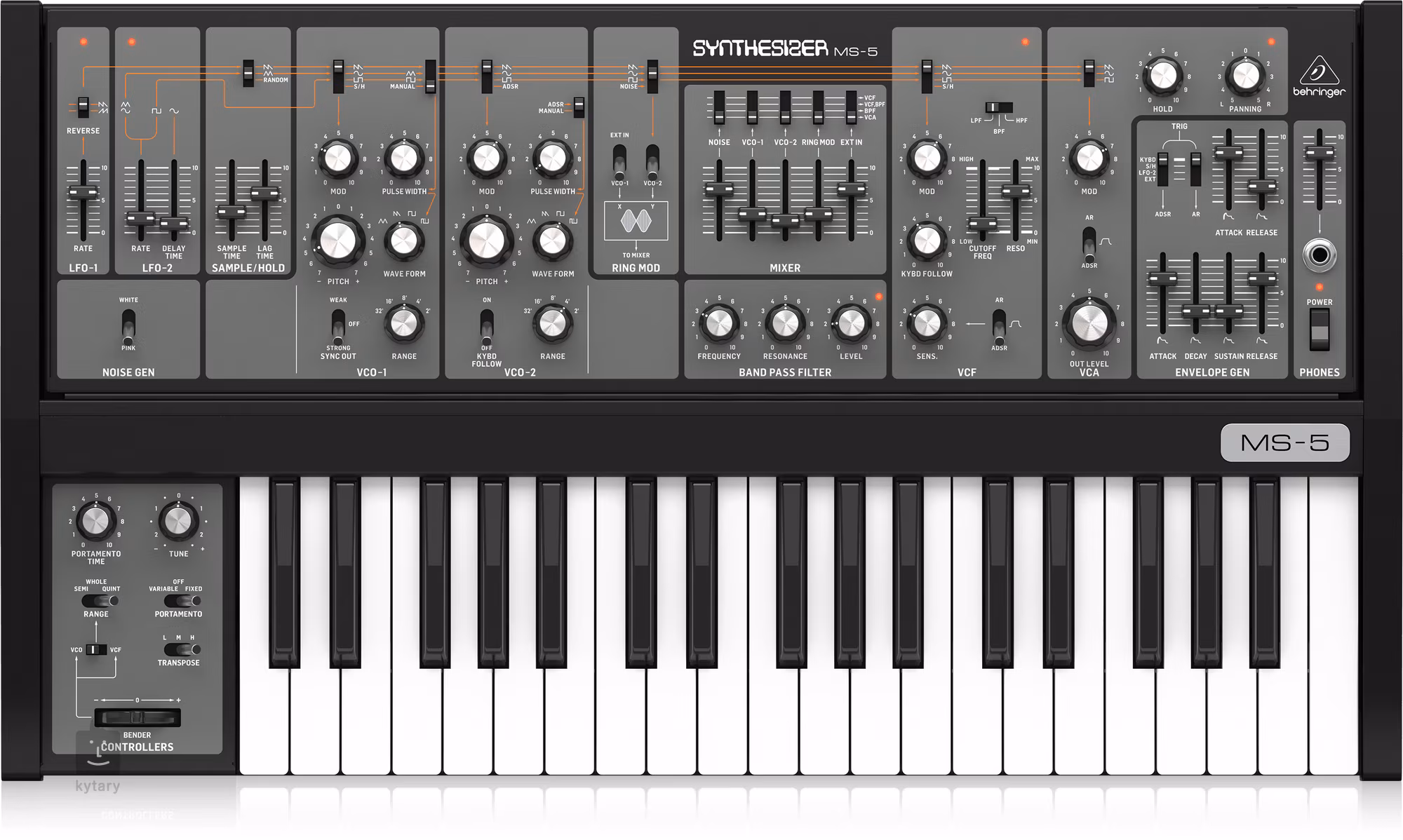 Behringer MS-5 je věrnou reprodukcí původního obvodu čistě analogového monofonního syntezátoru "SH-5", přičemž disponuje 37 polo-vyváženými klávesami s dynamikou úhozu.
