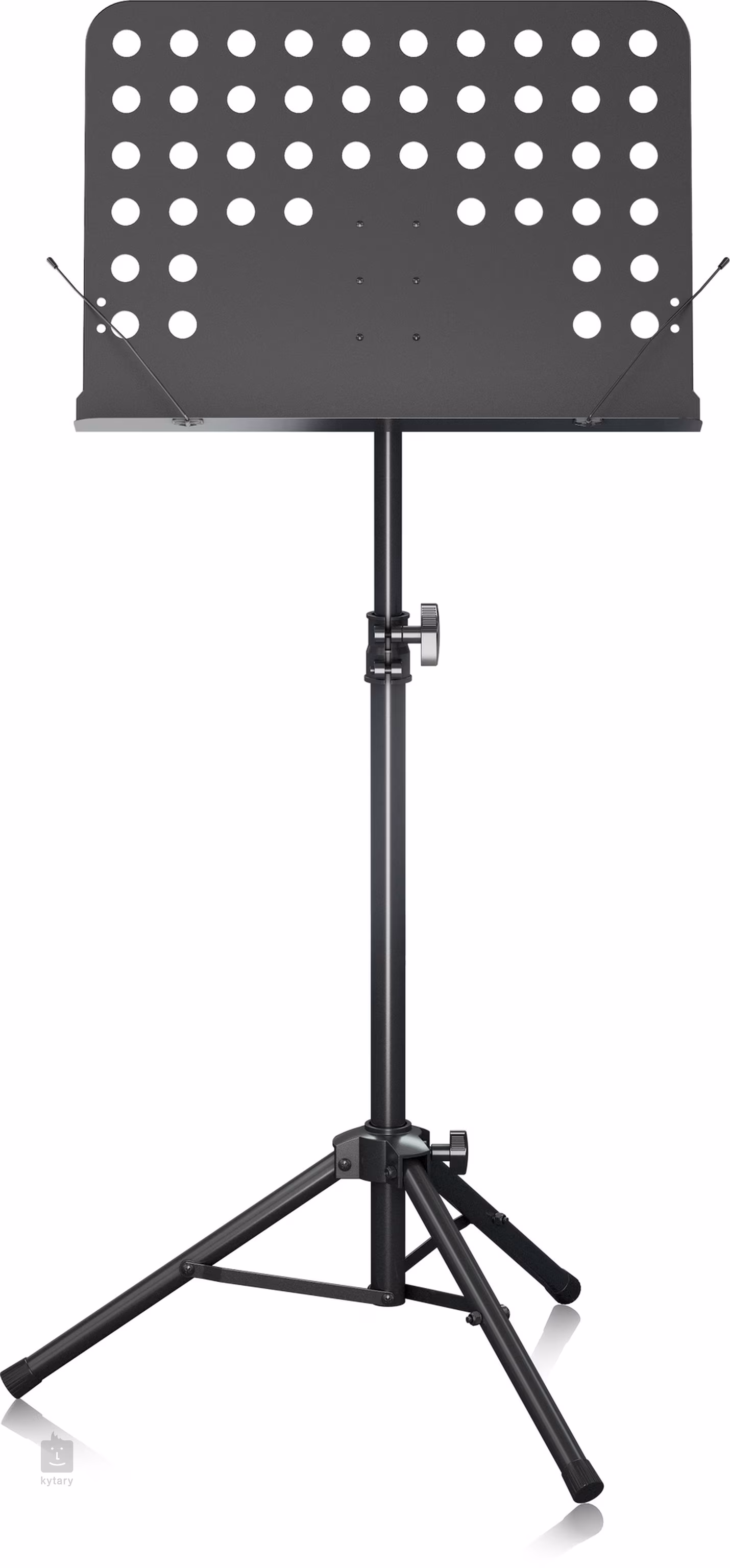 Perforovaný notový pult o rozměrech 48 × 33 × 4,5 cm (šířka × hloubka × výška) poskytuje dostatek prostoru pro notové materiály. Konstrukce pultu je pevná a není odnímatelná, což přispívá k celkové stabilitě stojanu.