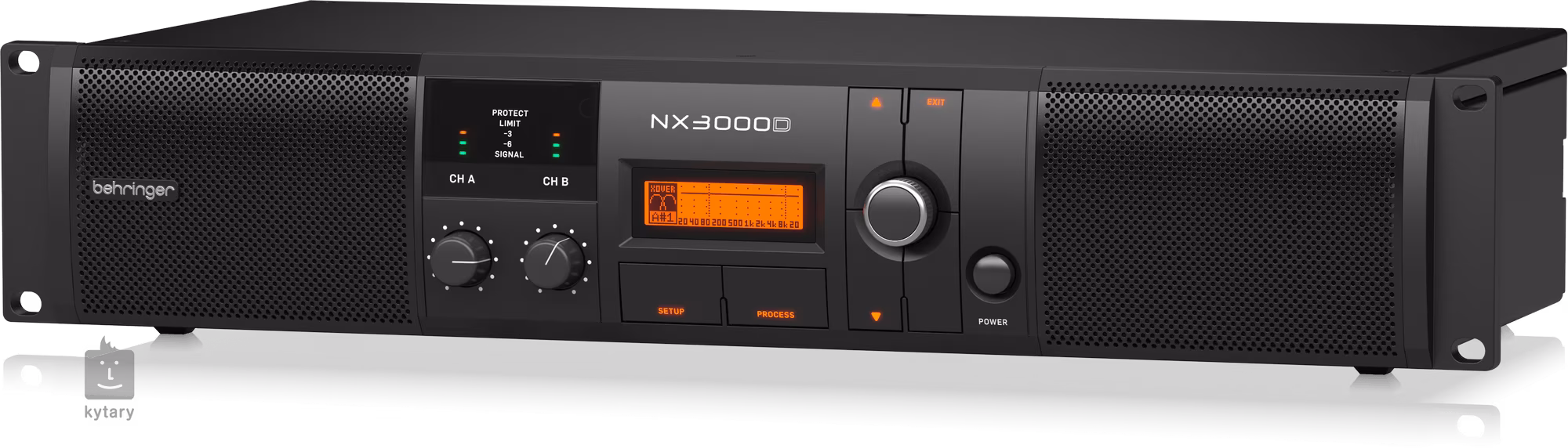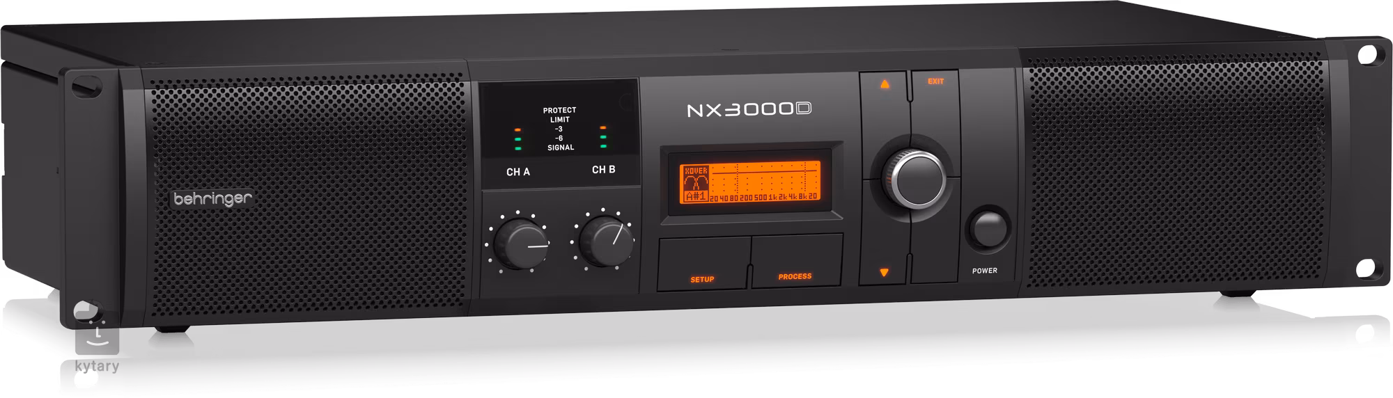 Behringer NX3000D je velmi lehký dvoukanálový zesilovač třídy D o výkonu 3000 W vybavený interní DSP jednotou a kompenzací impedance reproduktorů SmartSense.