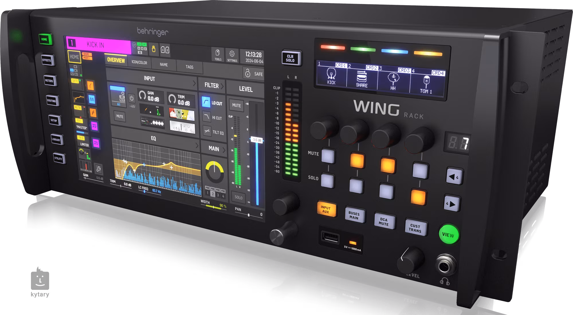 Behringer Wing Rack je 48 kanálový digitální mixážní pult s 28 stereo buss sběrnicemi, 24 Midas PRO mikrofonními předzesilovači a 8 Midas PRO výstupy a 10,1" dotykovou obrazovkou. Tato 4U racková jednotka nabízí navíc 4 stereo výstupy s vysoce kvalitními sluchátkovými předzesilovači vhodné pro IEM aplikace.