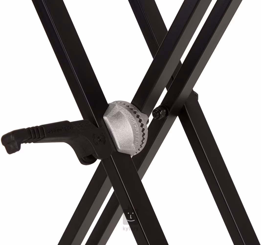 Profesionální stojan na klávesy s rychlým regulačním mechanismem (0°-180°) CROCODILE SYSTEM. Konstrukce z oceli zaručuje maximální stabilitu a robustnost.