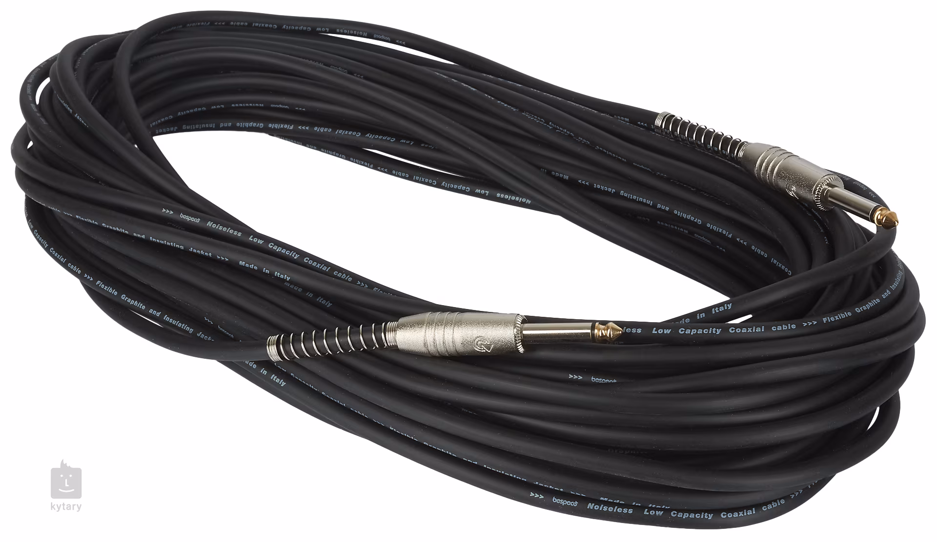 Tento nástrojový kabel ze série Bespeco Iron Extreme disponuje vodičem z 98% bezkyslíkaté mědi (OFC) a vnitřním polovodivým PVC pláštěm, díky němuž neprodukuje žádný šum. Ke kvalitě zvuku přispívá i spirálové stínění na více jak 92 procentech vodiče nebo pozlacené jacky s kovovým tělem. Samozřejmostí je odolné a zároveň flexibilní opláštění z PVC a vulkanizovaného silikonu.