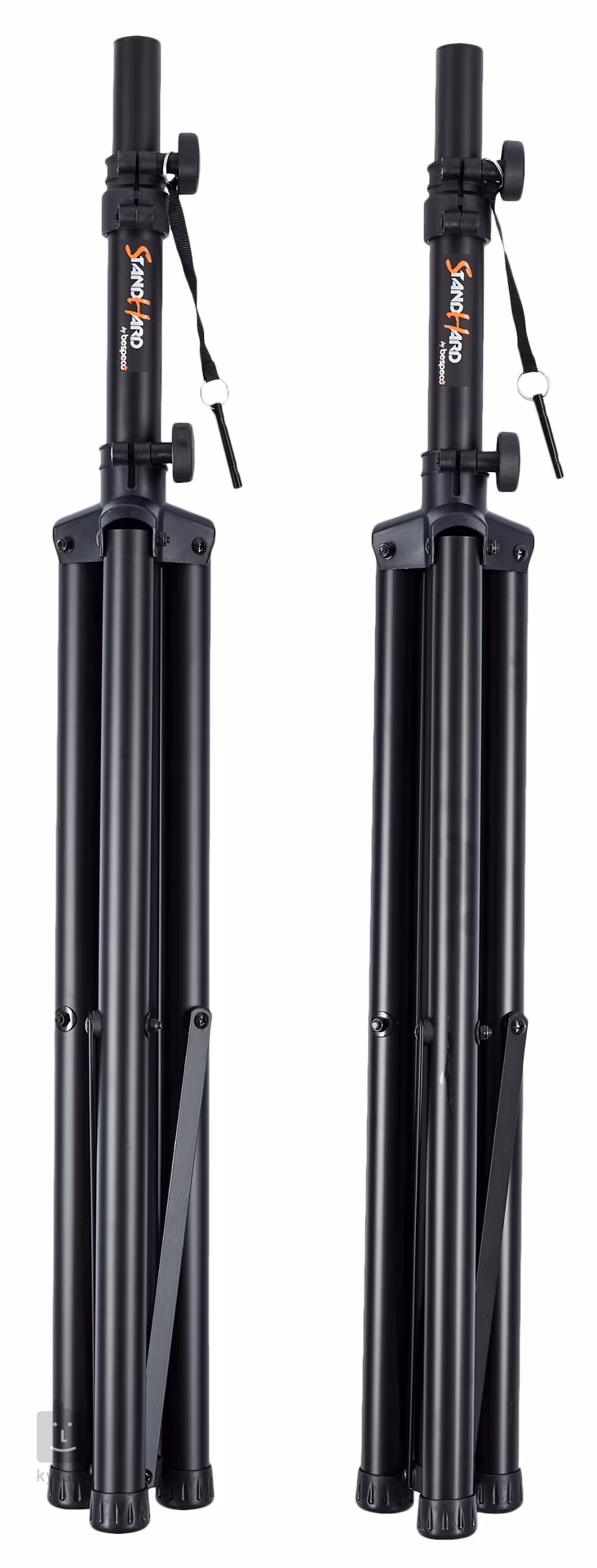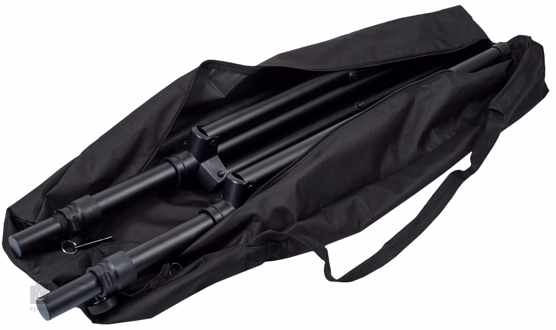 Sada ocelových stojanů na reproboxy s přenosnou taškou. Stojany jsou vyrobeny z odolné oceli a hliníku. Disponuje také bezpečnostními pojstkami nebo protiskluzovými nožkami.