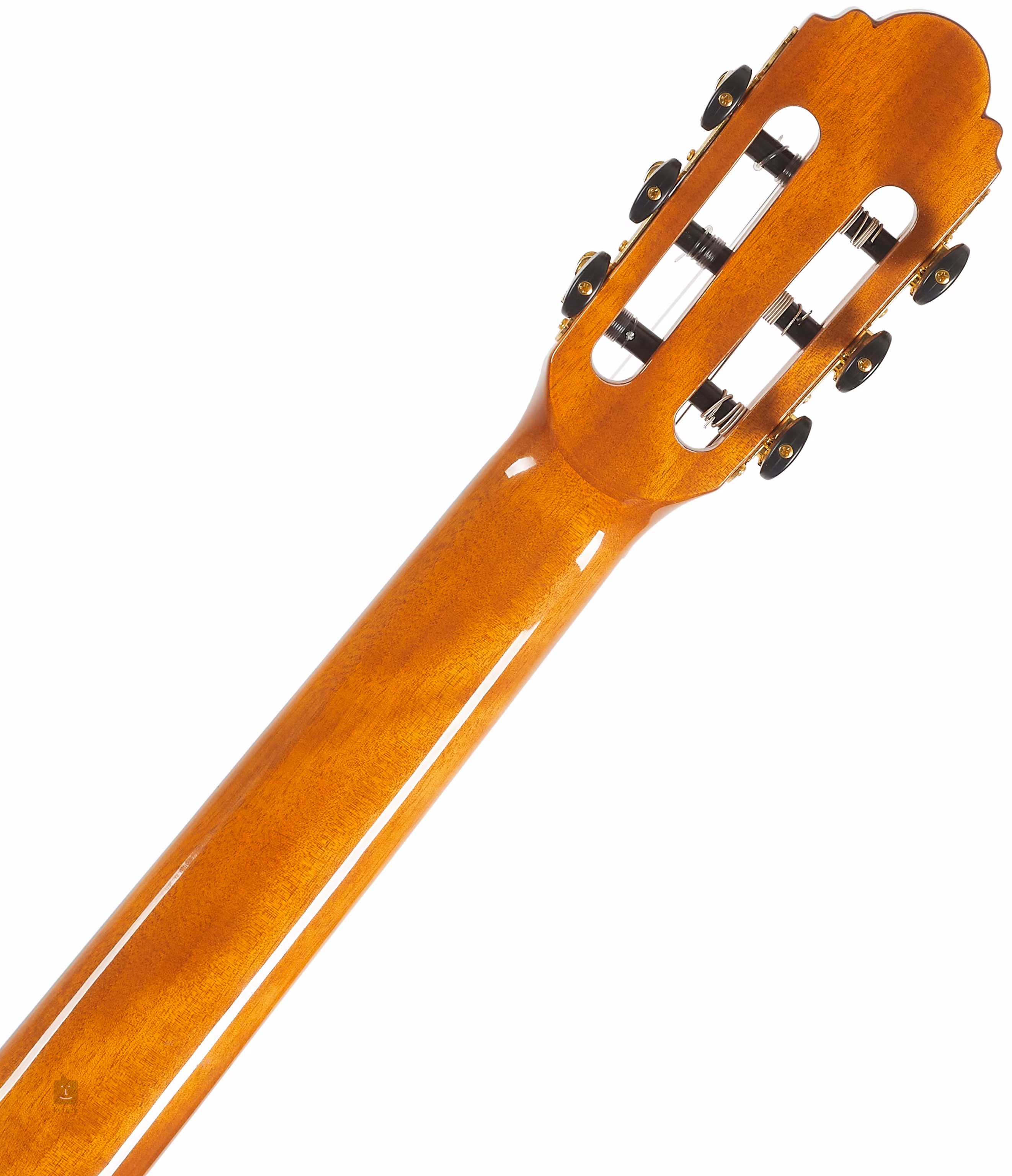 Klasická kytara Blond SC-44S R NAT v 4/4 velikosti nabízí polomasivní konstrukci s přední deskou z masivu smrku a zadní deskou a luby z vrstveného palisandru, mahagonový krk a palisandrový hmatník a kobylku. Struny jsou přes nultý pražec z tvrzeného kompozitního materiálu s kovovými částicemi (plastic steel) uchyceny v klasických chromovaných mechanikách. Stylové zpracování podtrhuje nanesený lesklý lak a tradiční prvky v podobě dekorativní rozety a plastové lemovky (ABS). Na kytaře jsou nataženy struny značky Savarez.