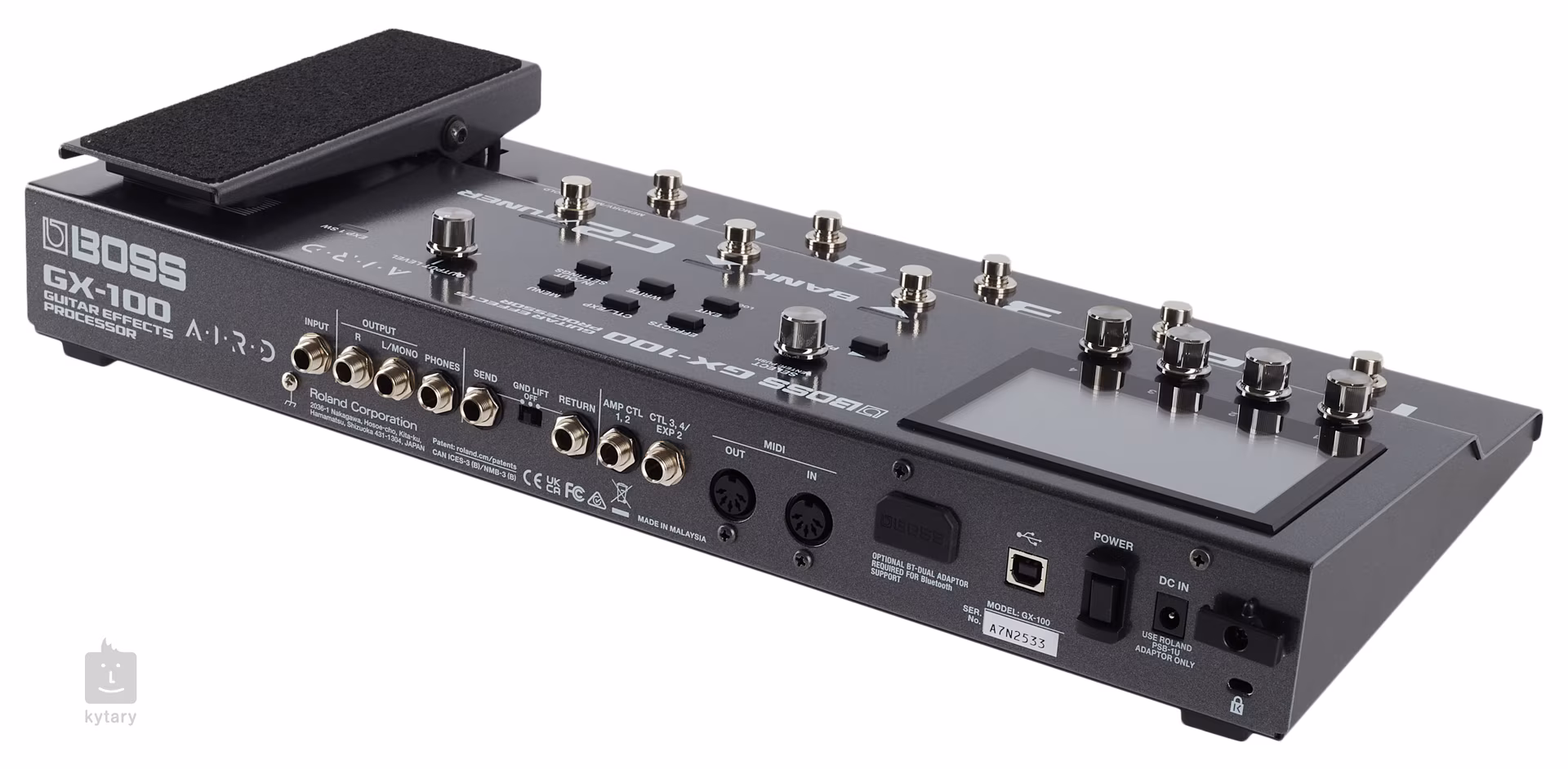 Boss GX-100 je výkonný multiefektový procesor pro kytaru či baskytaru s přívětivým uživatelským rozhraním, autentickým lampovým zvukem a dotykovou citlivostí technologie AIRD. Nabízí 23 typů zesilovačů a více jak 150 efektů Boss, ultra flexibilní routing simulací aparátů/efektů s patnácti přiřaditelnými bloky, široký výběr reproboxů a podporu pro nahrávání IR kabinetů ve formátu WAV, moderní design s intuitivním barevným dotykovým displejem a robustním kovovým šasi a téměř neomezené možnosti ovládání pomocí přiřaditelných footswitchů, expression pedálu plus dalších dvou externích switchů, externího expression pedálu nebo MIDI zařízení, které lze k multiefektu integrovat.