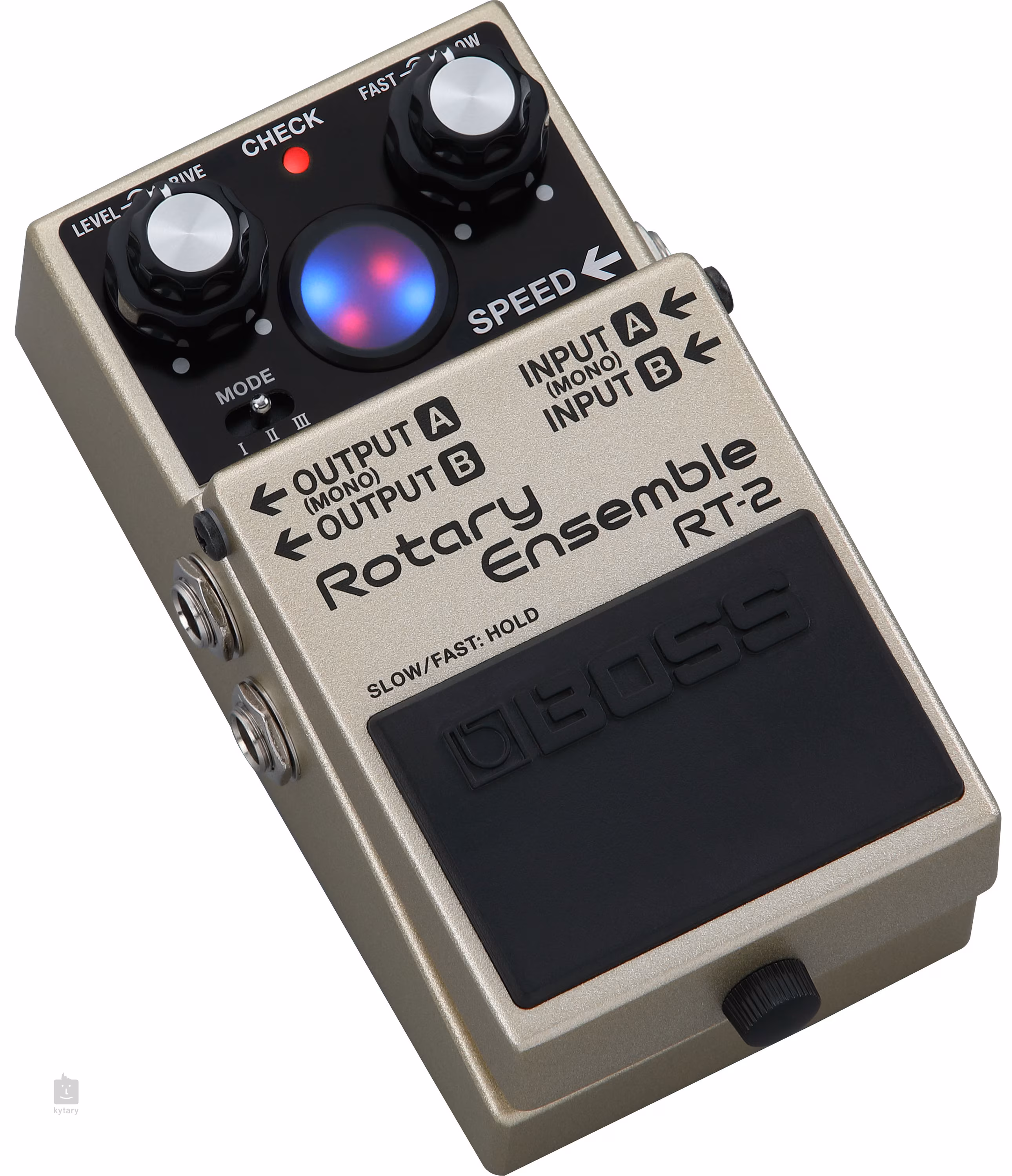 Pedál RT-2 Rotary Ensemble od společnosti BOSS je založen na zvuku rotujícího reproduktoru Leslie, který byl původně vyroben pro varhany Hammond, ale stal se také jedním z úplně prvním modulačních efektů pro elektrické kytary. Rotace reproduktoru vytvářela zajímavý efekt známý v akustice jako Dopplerův jev, při němž se frekvence zvukové vlny mění v závislosti na vzdálenosti posluchače od jejího zdroje. Výsledkem je houpavý modulační efekt, který můžete znát z písní jako Black Hole Sun od Soundgarden, It’s Only Love od The Beatles nebo City Love Johna Mayera.