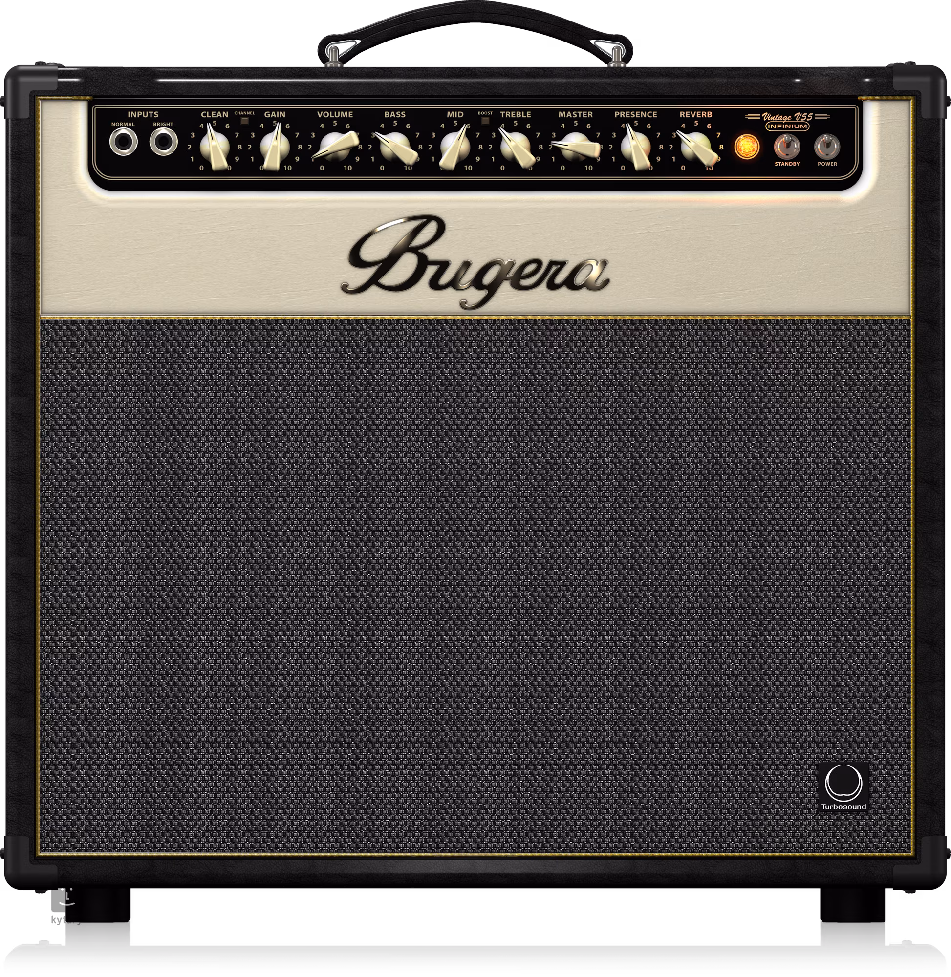 Bugera V55 INFINIUM je dvoukanálové kytarové lampové kombo s výkonem 55 wattů, které oceníte ve zkušebně, na stage i ve studiu. Vintage design aparátu perfektně ladí i se zvukem clean a overdrive kanálu. V případě druhého kanálu se bavíme o low až mid-gain overdrive klasického rocku, rozhodně nečekejte high-gain distortion, to vám V55HD INFINIUM opravdu neposkytne.