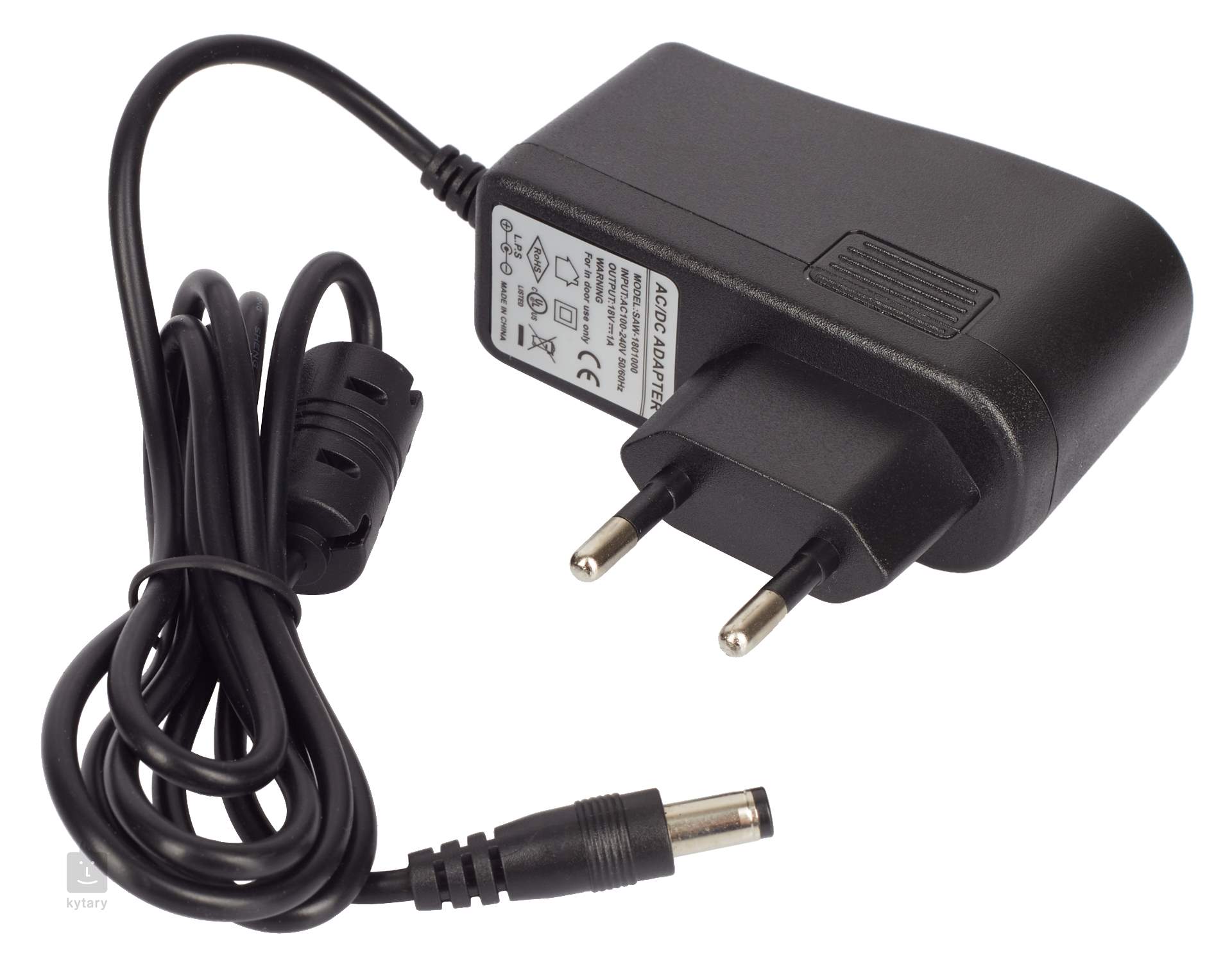Napájecí adaptér čínské značky Caline s napětím 18 V (center negative) a maximálním odběrem 1000 mA.