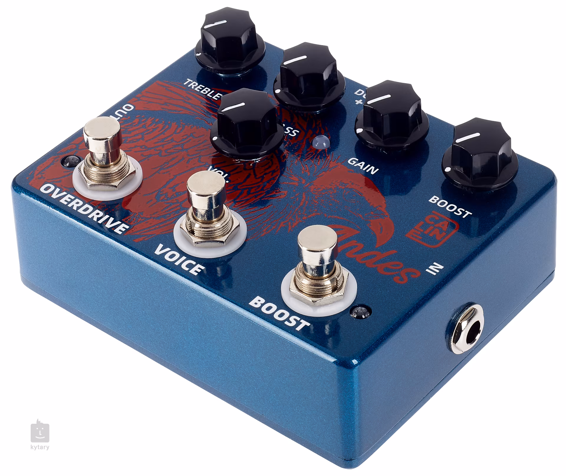 Pedálový efekt Caline Andes spojuje v jednom šasi transparentní overdrive CP-12 Pure Sky Overdrive s boosterem, který je umístěný před overdrive. Jednoduše tak z jedné dobré nakopnete signál i gain pro odpovídající vyznění kytarových sól a vyhrávek. Oba obvody pedálu lze používat samostatně i simultánně.