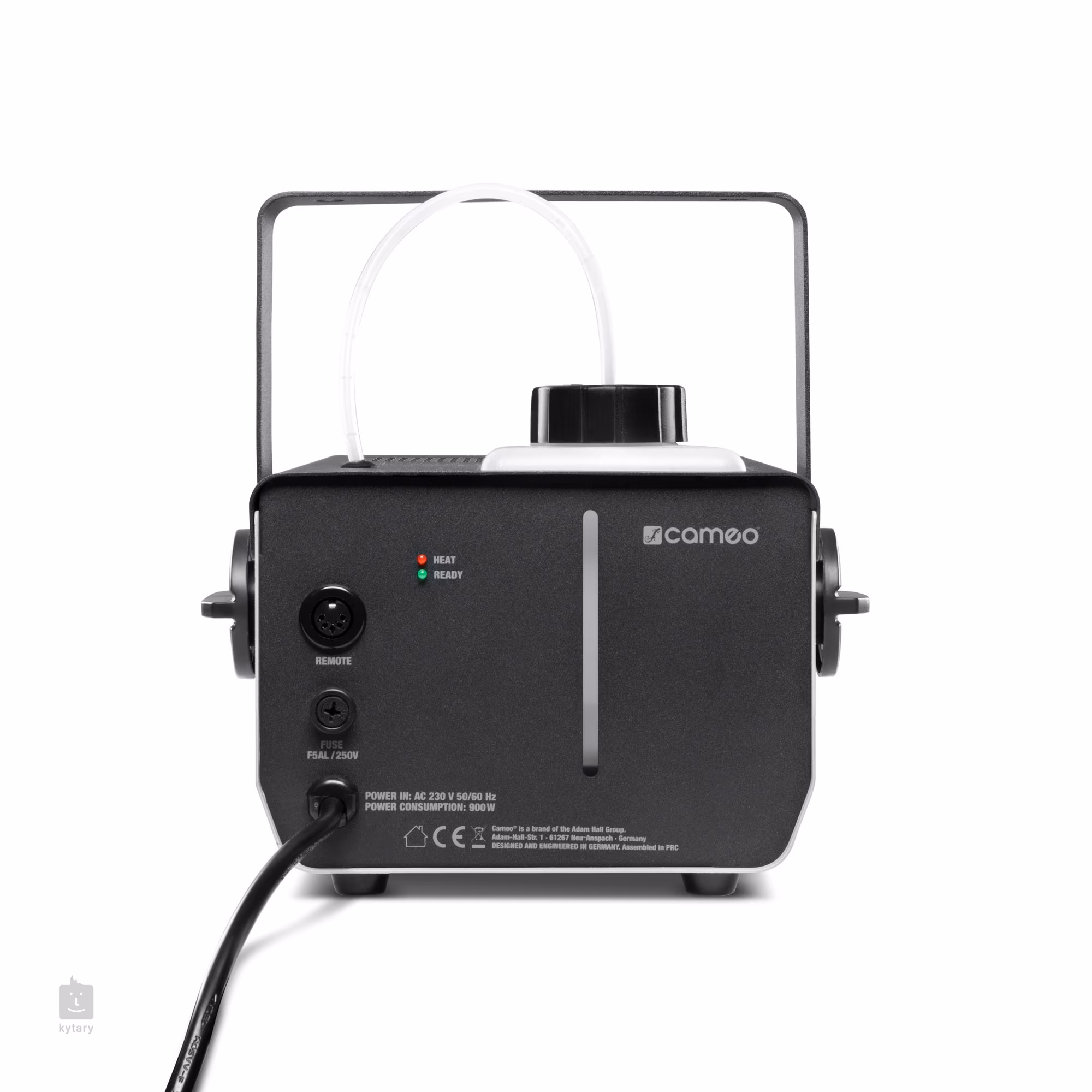Phantom F3 od společnosti Cameo je profesionální výrobník mlhy, který poskytuje zlatou střední cestu mezi vysokým výkonem a kompaktními rozměry. Výkon jeho topného tělesa je 950 W, což umožňuje produkci mlhy o objemu zhruba 240 m³ za minutu. Prvotní zahřátí výrobníku na provozní teplotu trvá přibližně 3 minuty a poté potřebuje pouhých 8 vteřin na opětovné zahřátí – můžete se tak spolehnout na plynulý provoz bez čekání po celou dobu akce.