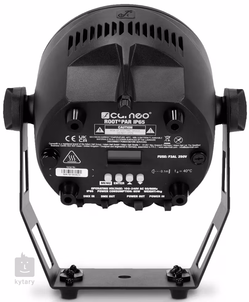 K ovládání můžete využít standardní protokol DMX512, automatické či zvukem ovládané programy. K dispozici je také režim Master/Slave. Přístroj je osazen vodotěsnými DMX konektory a napájecími konektory PowerCon. Celková hmotnost zařízení je 4,2 kg.