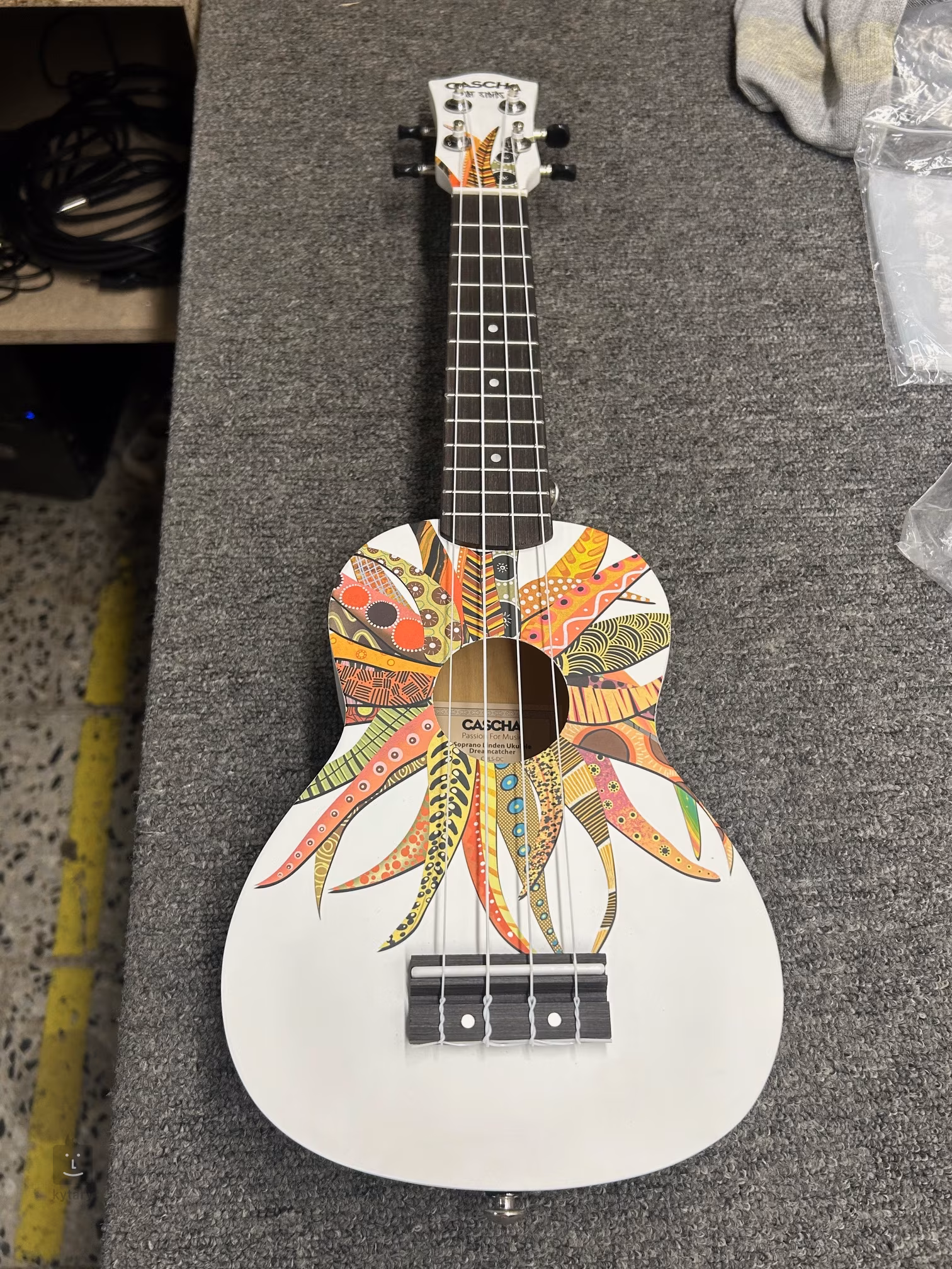 Akustické ukulele CULS-DC Soprano Ukulele Linden Dreamcatcher (incl. Bag, 3 Picks) z řady Art Series je cenově dostupný nástroj vhodný pro začínající ukulelisty a ukulelistky. Nabízí tělo zhotovené z laminované lípy, lipový krk, hmatník a kobylku z kompozitního materiálu a firemní ladící mechaniky kytarového typu. Ukulele je dodáváno v obalu spolu se třemi trsátky.