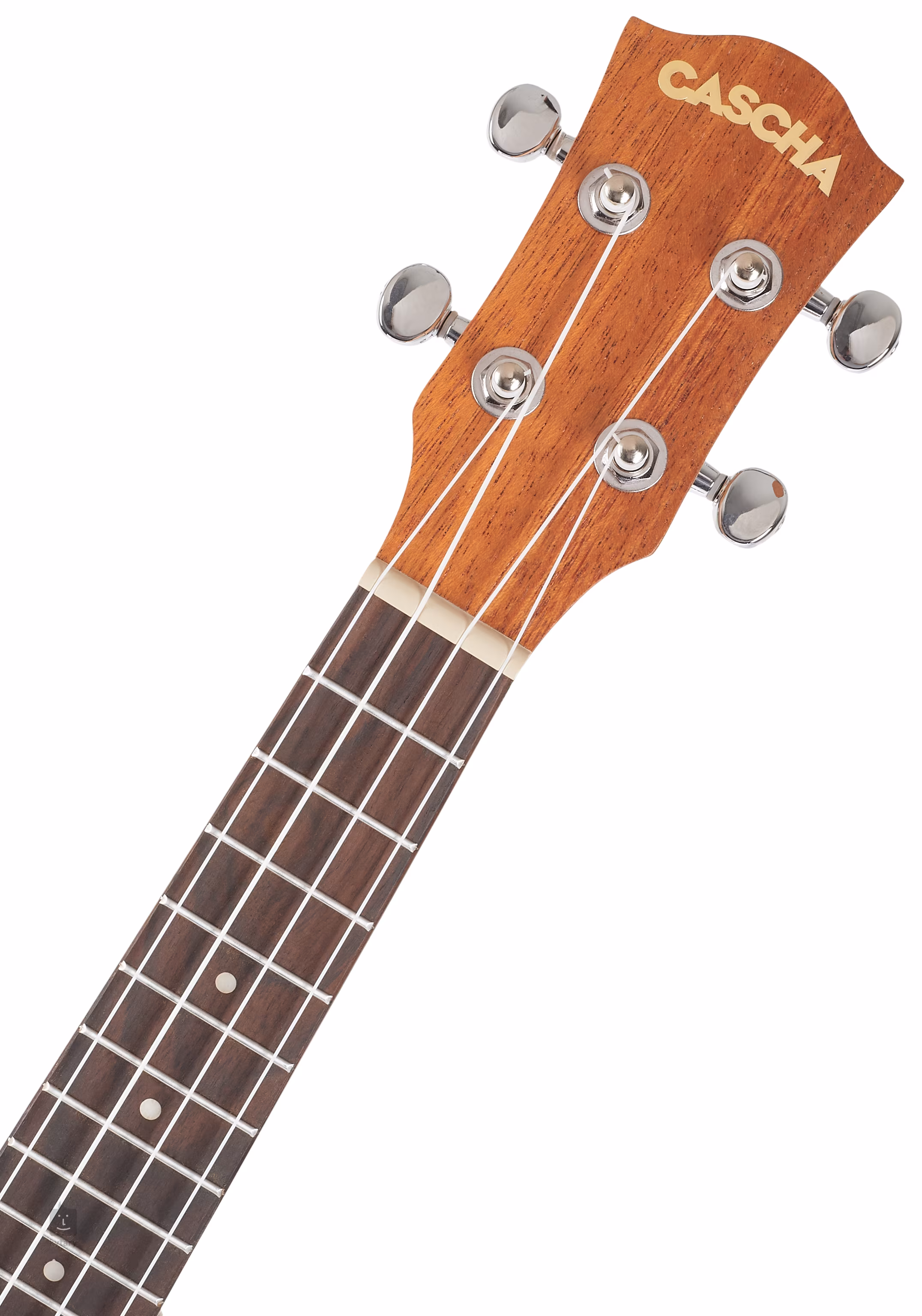 Sopránové ukulele Cascha s označením Premium je cenově dostupný nástroj, který potěší děti i dospělé. V rámci tohoto starter packu spolu s ukulele získáte praktický polstrovaný obal (tloušťka polstrování 5 mm), tři trsátka, školu hry na ukulele v českém jazyce a klipovou ladičku (k napájení ladičky je zapotřebí lithiová baterie CR2032).