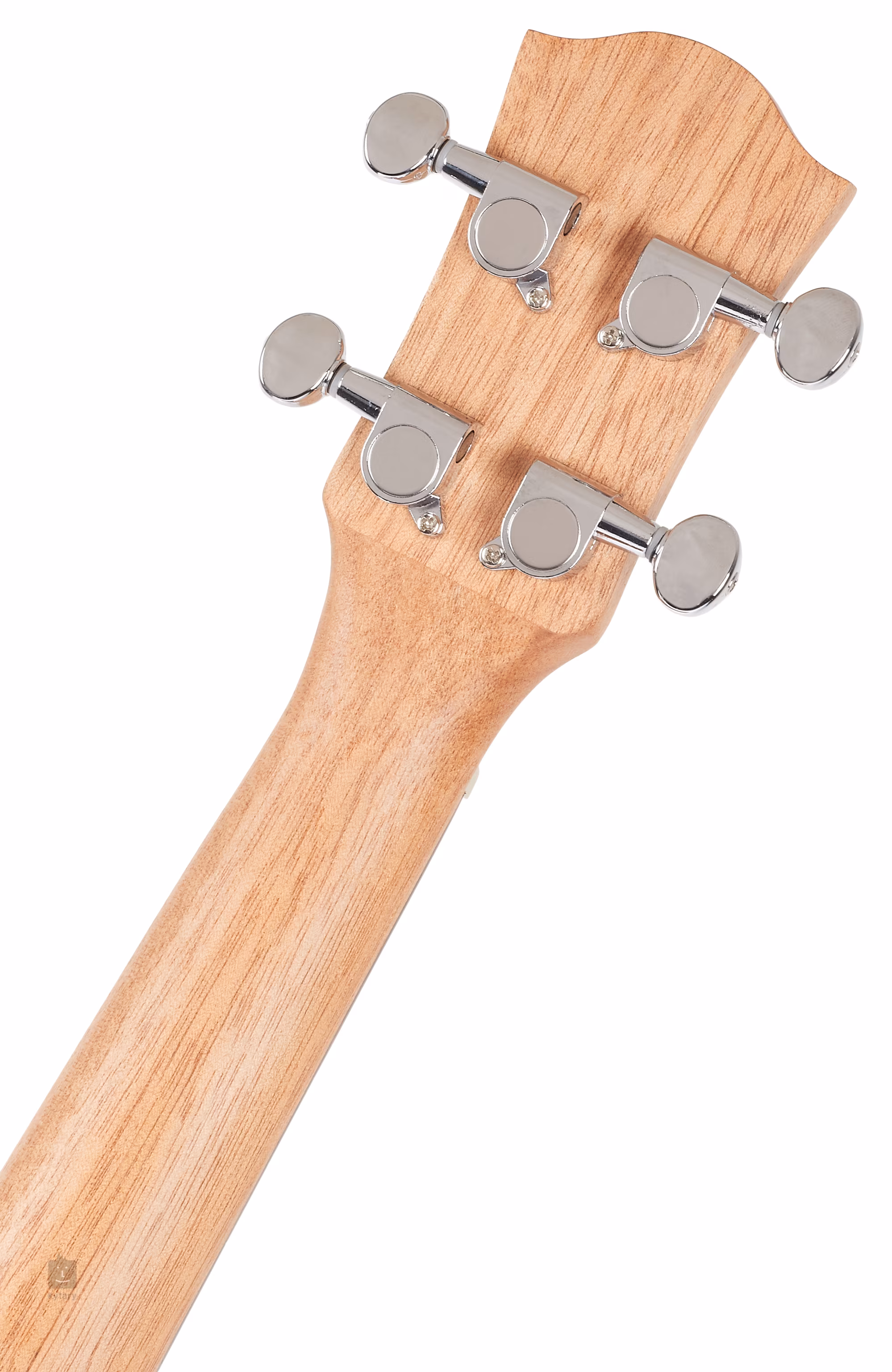 Tělo ukulele je zhotoveno z mahagonu. Plochu palisandrového hmatníku rozděluje šestnáct pražců (ze stejného materiálu je zhotovena i kobylka). Struny jsou uchyceny v chromovaných ladicích mechanikách kytarového typu. Pěkné zpracování podtrhuje rozeta a oboustranná obvodová lemovka těla z imitace želvoviny.