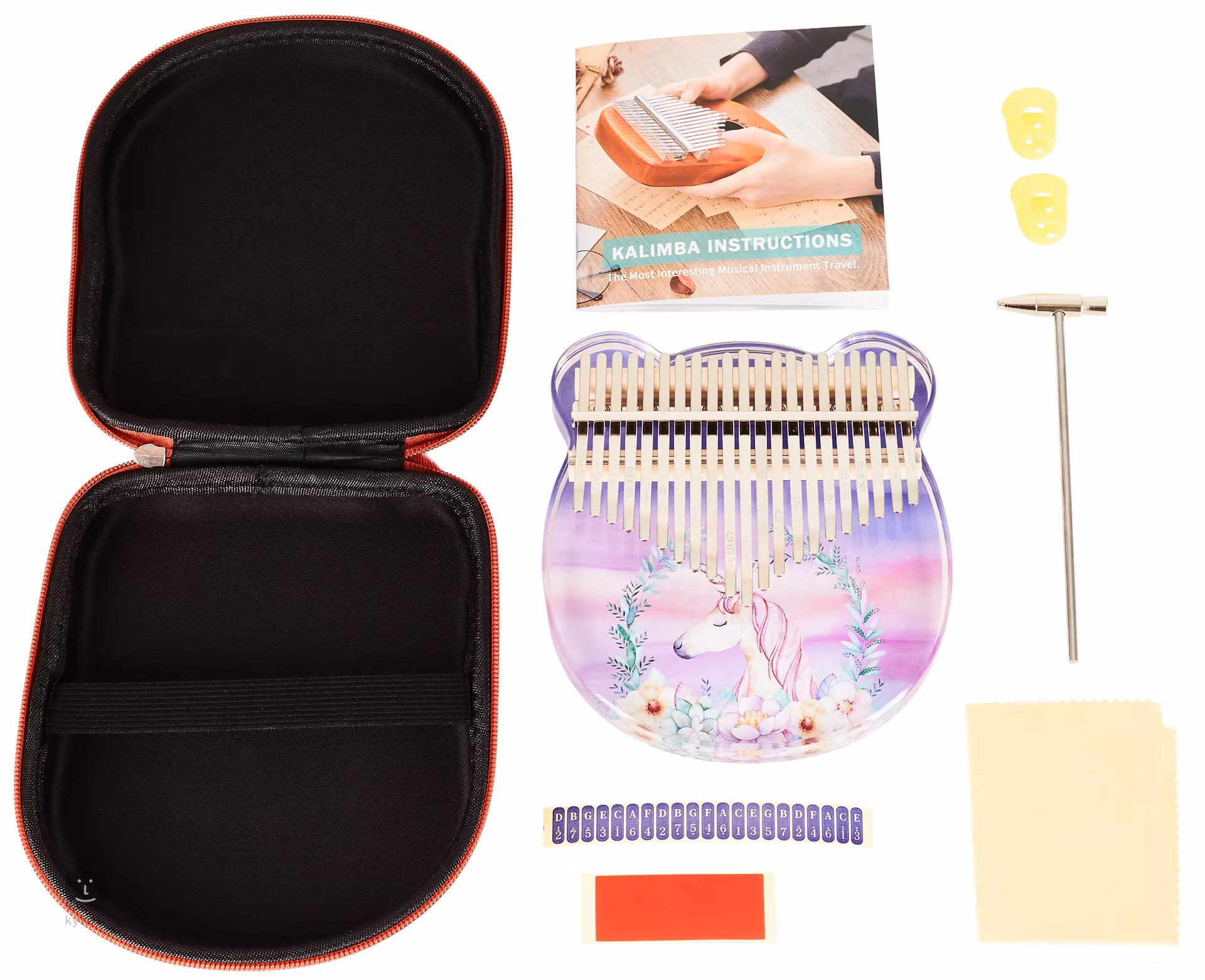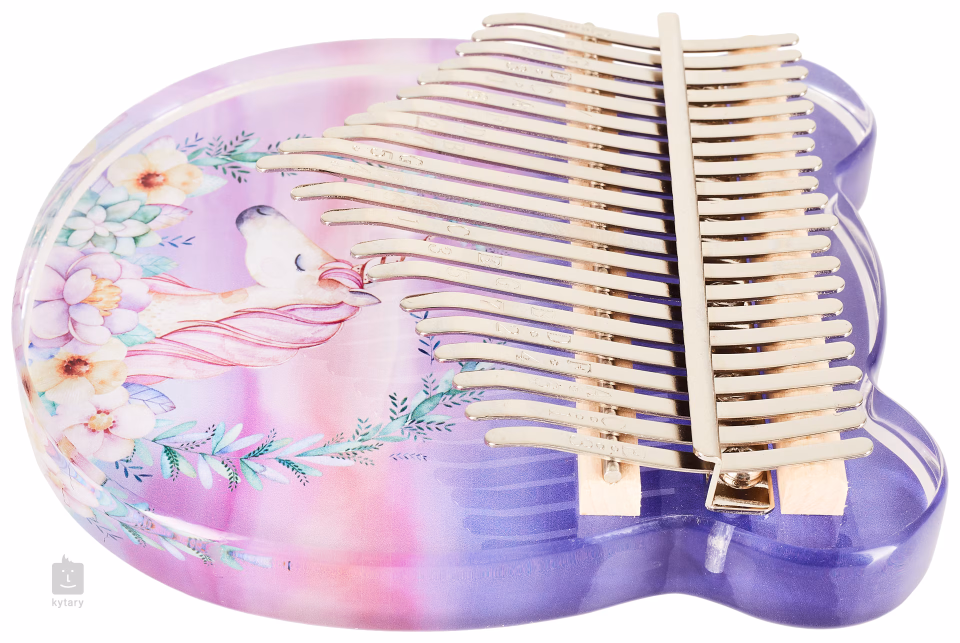 Kalimba je unikátní melodický nástroj, který přidá do vaší tvorby nebo live performance unikátní a nezaměnitelný prvek. Může sloužit k doprovodné nebo sólové hře. Tento model je netradičně vyroben z průhledného akrylu, který je velice odolný a poskytuje skvělé zvukové vlastnosti. Klávesy z karbonové oceli pak nástroji poskytují čitelný a hlasitý, avšak stále příjemně vřelý zvuk. Na klávesách najdete také vyryté tóny, což pomůže v orientaci zejména začínajícím hráčům.